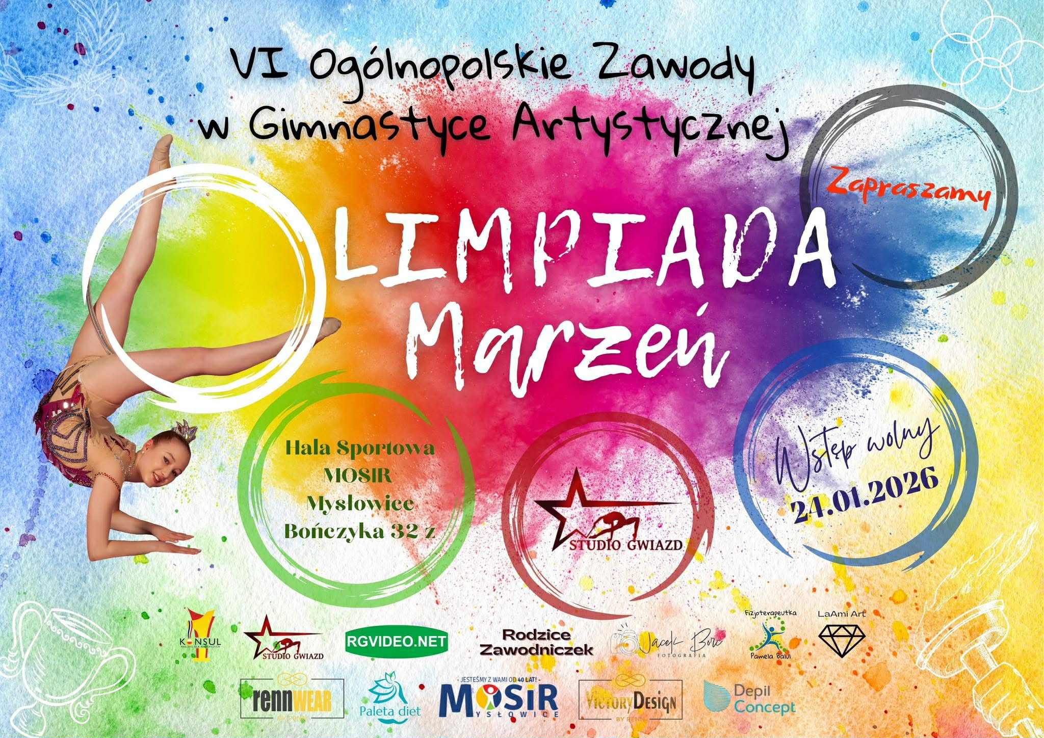 24 stycznia br. Studio Gwiazd organizuje VI Ogólnopolskie Zawody w Gimnastyce Artystycznej “Olimpiada Marzeń”.