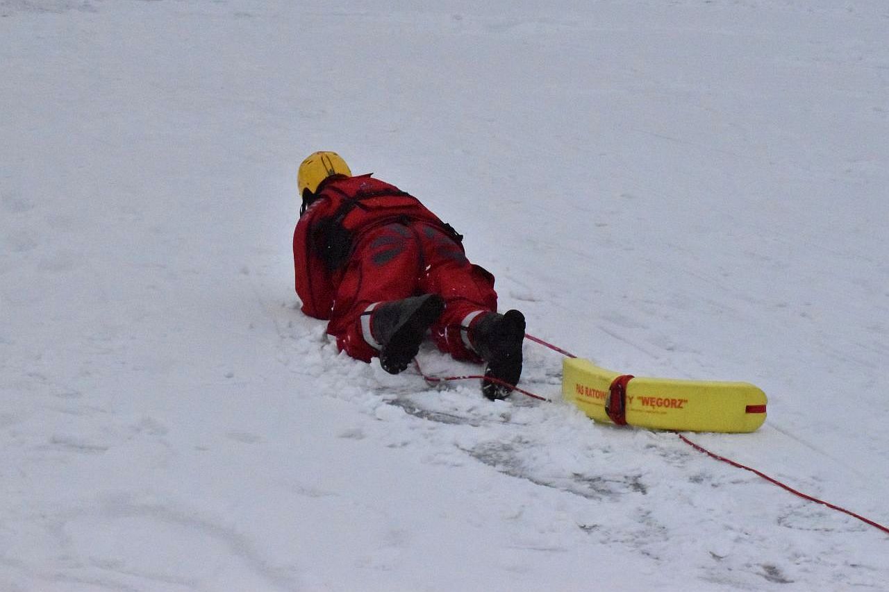 – Zawołać o pomoc, żeby ktoś nas usłyszał i rękoma wyjść poza tę „dziurę” wody, najlepiej na lód, chwycić się czegokolwiek – instruuje st. str. Daniel Żmuda z Komendy Miejskiej Państwowej Straży Pożarnej w Mysłowicach.