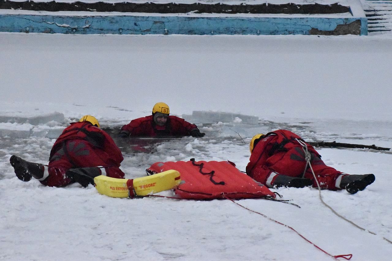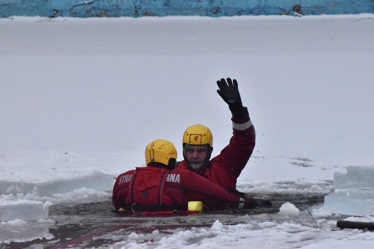 – Jeśli nam braknie sił, to przeważnie lód jest zimniejszy, ręce nam przymarzną i jest mniejsze ryzyko, że pójdziemy pod wodę – dodaje st. str. Daniel Żmuda.