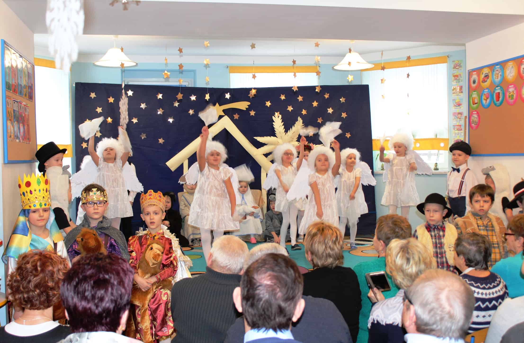 Była stajenka, wołek, osiołek, pastuszkowie i królowie. Nie zabrakło więc elementów klasycznych jasełek, ale ambitne maluchy nie poprzestały na przedstawieniu wydarzeń sprzed dwóch tysięcy lat. Świąteczne widowisko, jakie przedszkolaki zaserwowały swoim dziadkom, urozmaiciły piosenki, wierszyki i tańce. Każda grupa zaprezentowała zupełnie inny program, sumiennie przygotowywany z nauczycielkami przez ostatnie tygodnie. Nic dziwnego, że efekt końcowy wzruszył babcie i dziadków do łez.