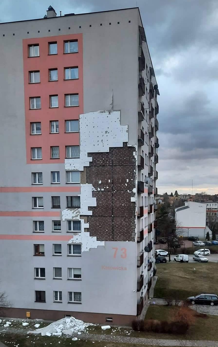 – Wczesnym ranem zaczęły wpływać zgłoszenia dotyczące oderwanego ocieplenia z elewacji budynku wielorodzinnego przy ul. Katowickiej 73 oraz o przewróconym drzewie przy ul. Mickiewicza – informuje mł. bryg. Wojciech Chojnowski, rzecznik prasowy KM PSP Mysłowice.