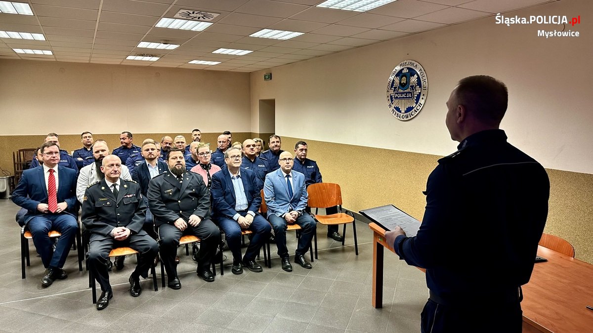 Po komendancie głos zabrał Prezydent Miasta Mysłowice Dariusz Wójtowicz, który podziękował za zapewnienie bezpieczeństwa mieszkańców Mysłowic. Prokurator Piotr Kądziela podziękował za bardzo dobrą współpracę z mysłowicką komendą. Następnie słowa uznania w kierunku mysłowickich stróżów prawa skierowali Przewodniczący Rady Miasta Mysłowice Antoni Zazakowny i Przewodniczący Komisji Samorządności i Przestrzegania Prawa w Mysłowicach Artur Bula, którzy docenili wysiłek policjantów wkładany w poprawę bezpieczeństwa mieszkańców Mysłowic i zapewnili gotowość do dalszej współpracy w nadchodzącym roku.