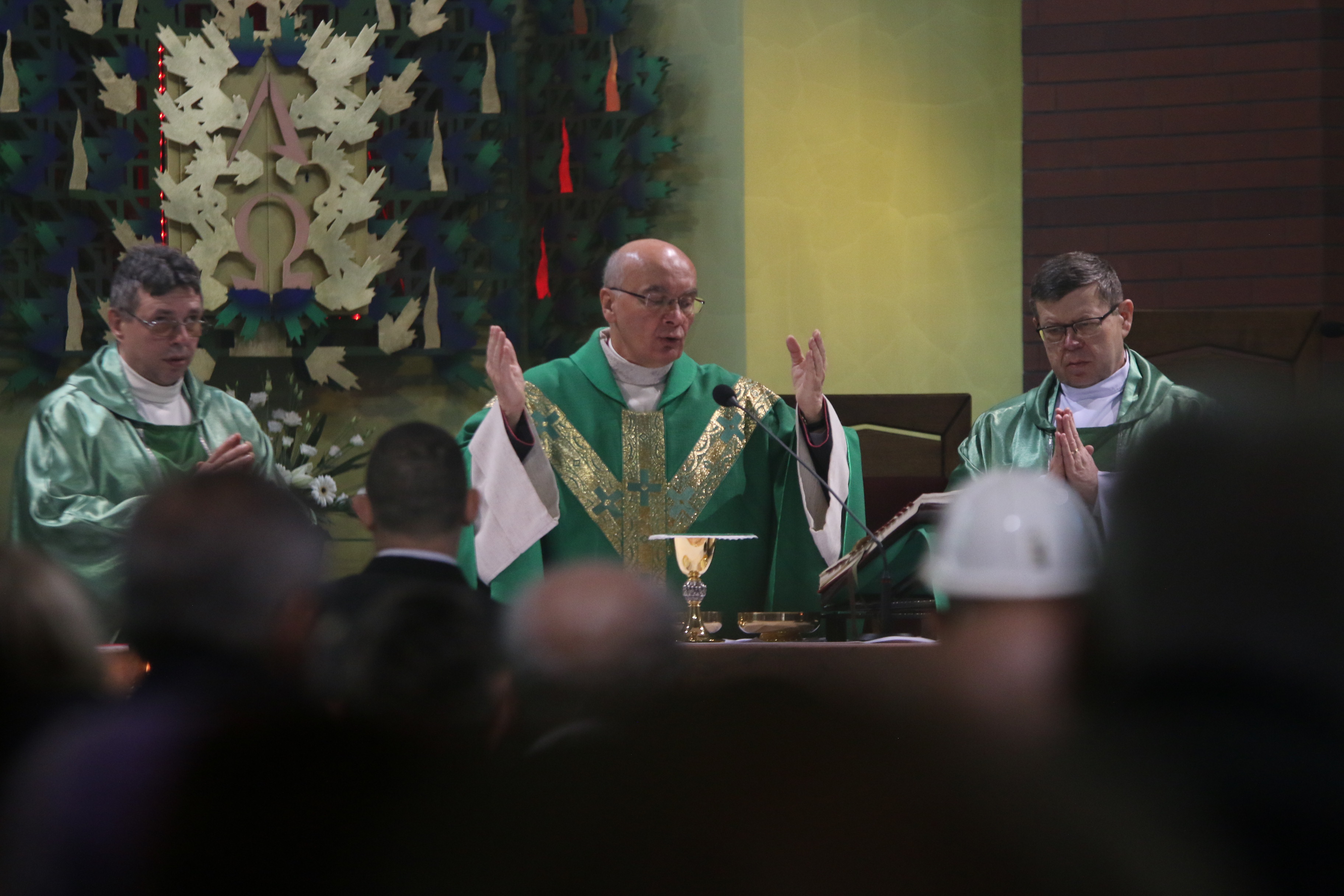 Podczas mszy obecni byli m.in. prezydent Dariusz Wójtowicz, pełnomocnik rządu ds. restrukturyzacji górnictwa węgla kamiennego Grzegorz Tobiszowski, poseł Wojciech Król, przedstawiciele kopalni Mysłowice-Wesoła, mysłowiccy radni, górnicy, górnicze rodziny oraz górnicze poczty sztandarowe.