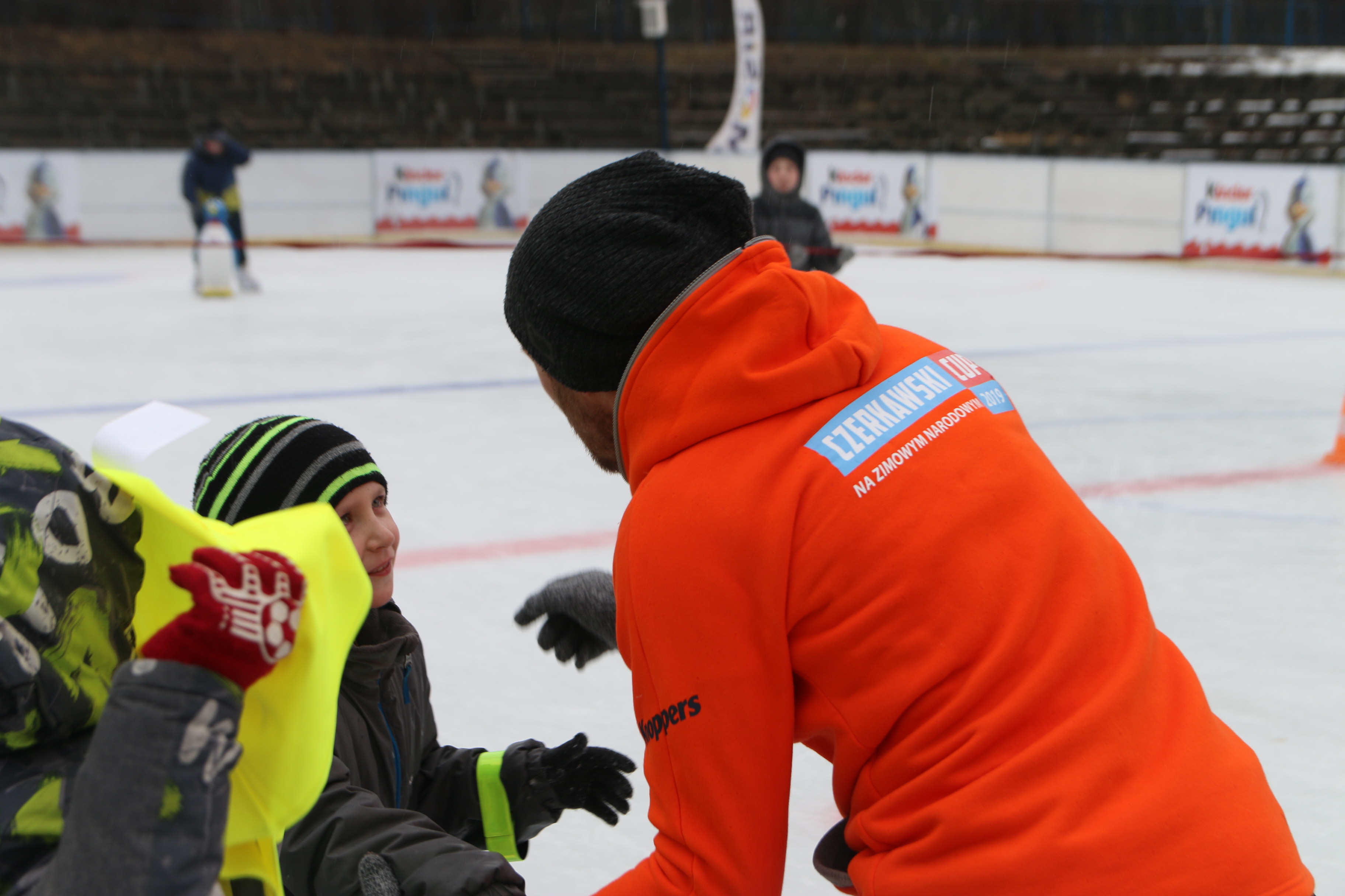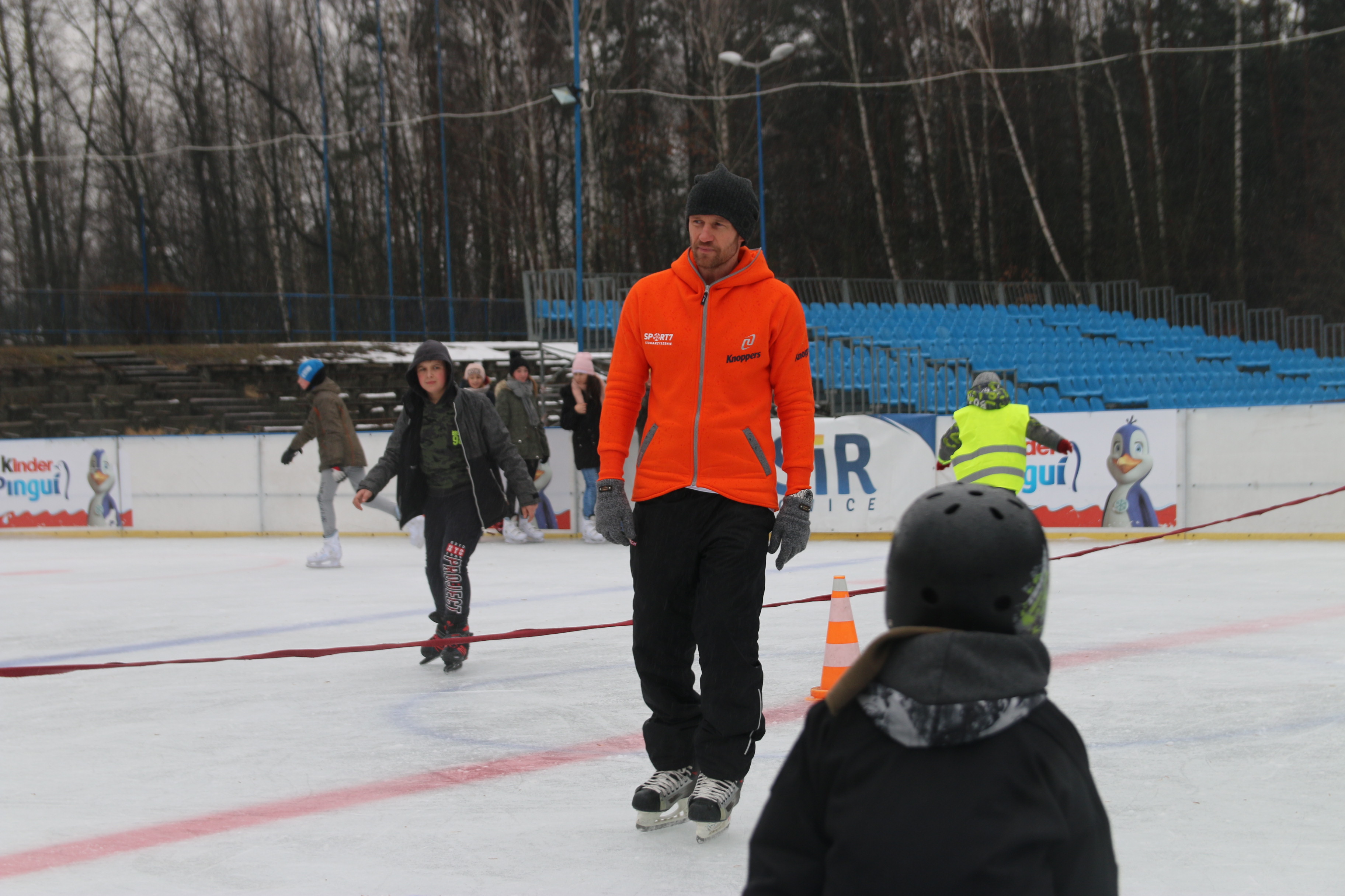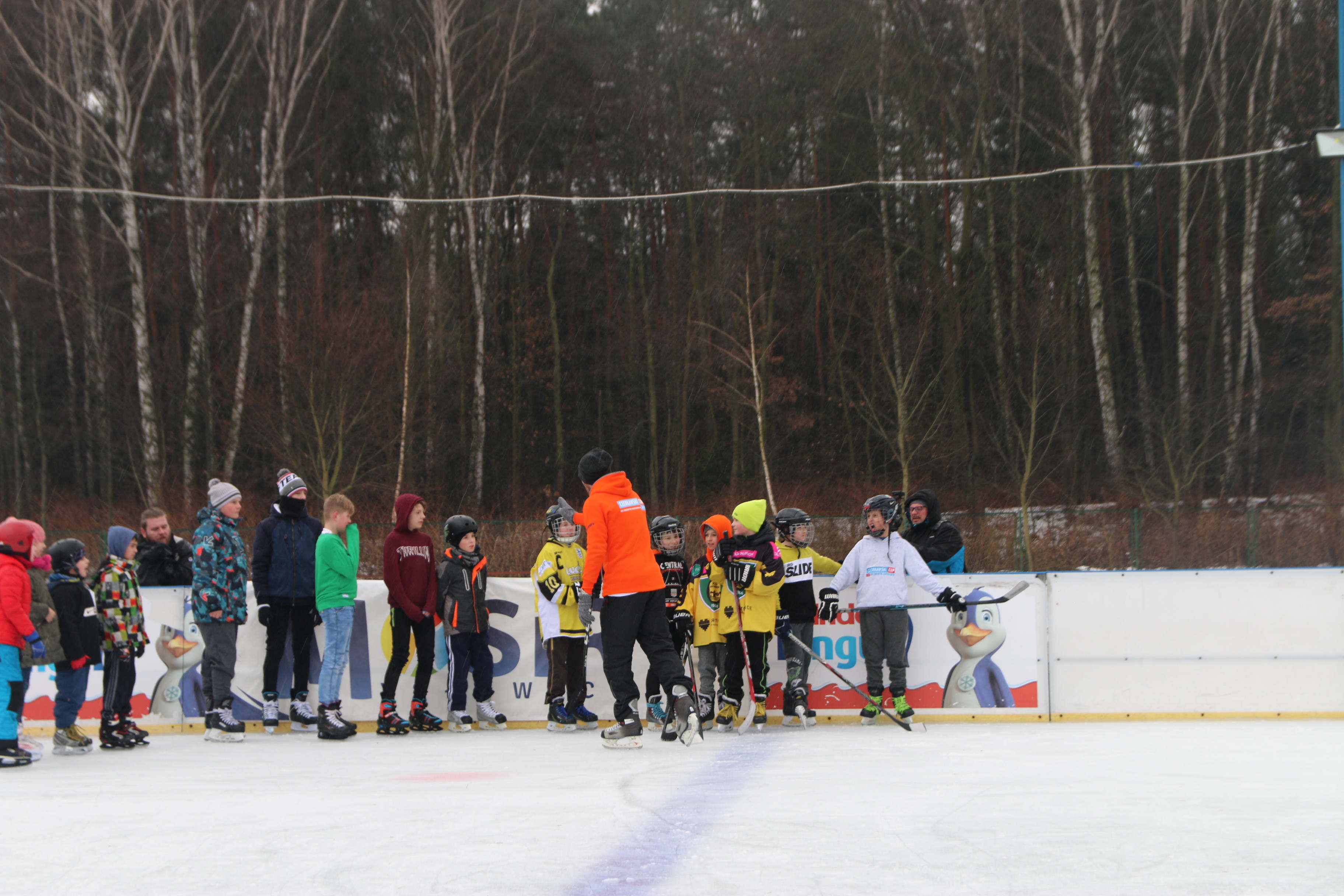 Hokeiści nie tylko pokazali, jak stawiać pierwsze kroki na lodzie, ale także zorganizowali ciekawe konkurencje sprawnościowe dla dzieci. Te z wielkim zaangażowaniem przysłuchiwały się radom, jakie dla małych miłośników hokeja mają słynni zawodnicy.