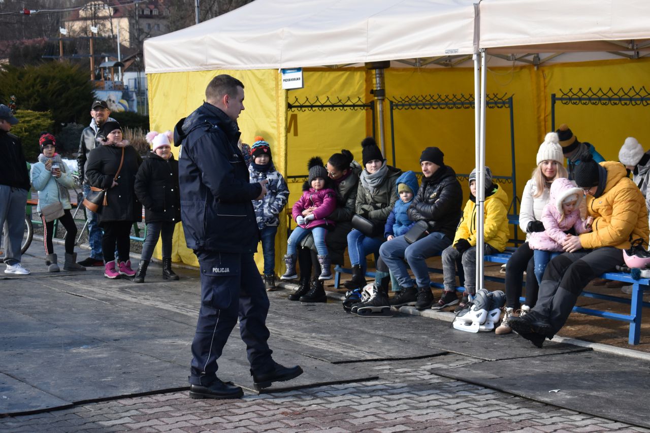 Ferie zimowe to czas odpoczynku i dobrej zabawy nie tylko dla dzieci, ale też dla ich rodziców. Jednak czasem wystarczy moment, aby stała się tragedia. Dlatego tuż przed rozpoczęciem ferii mysłowiccy policjanci i strażacy na miejskim lodowisku przypominali dzieciom i rodzicom o podstawach bezpieczeństwa.