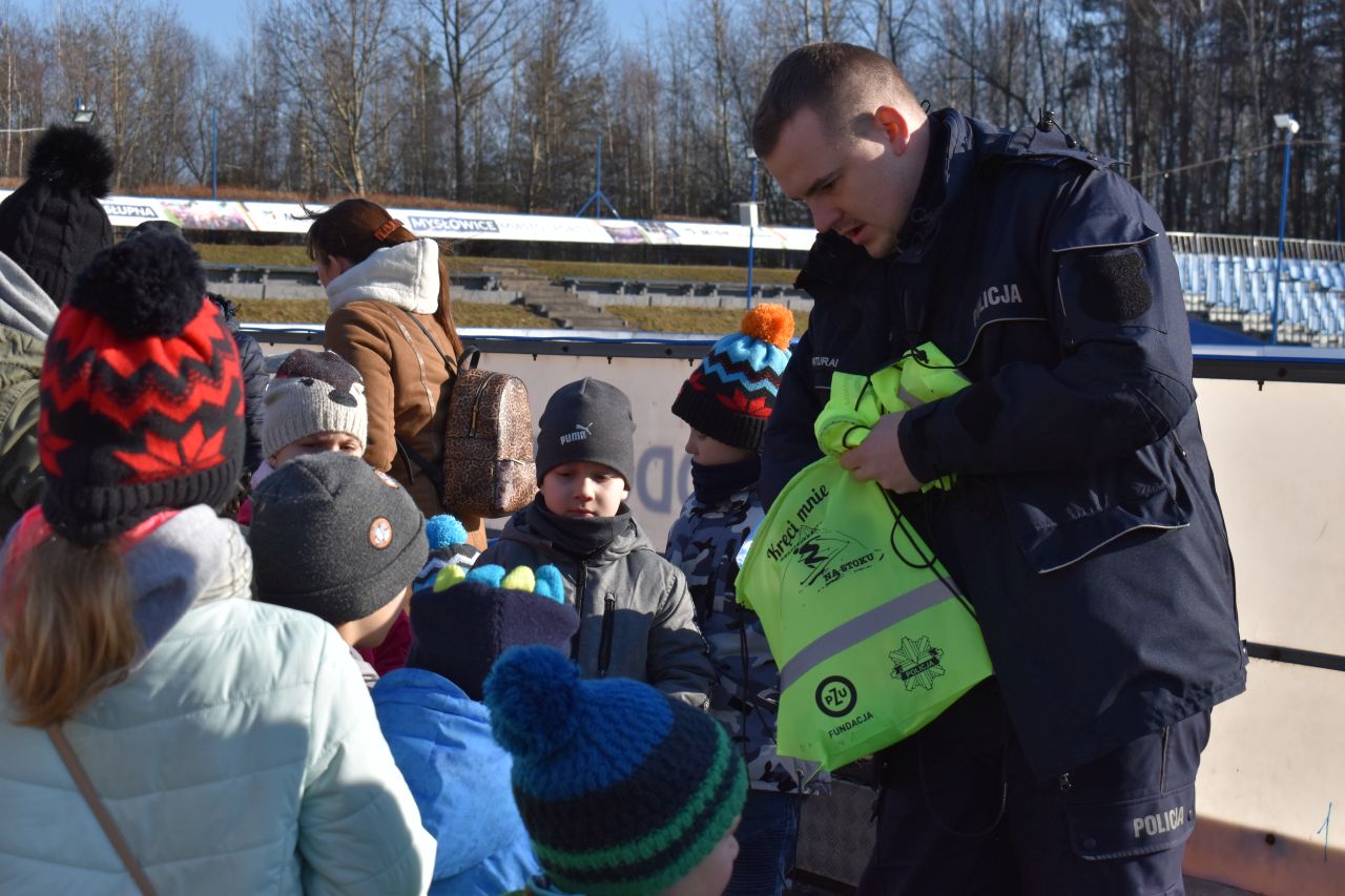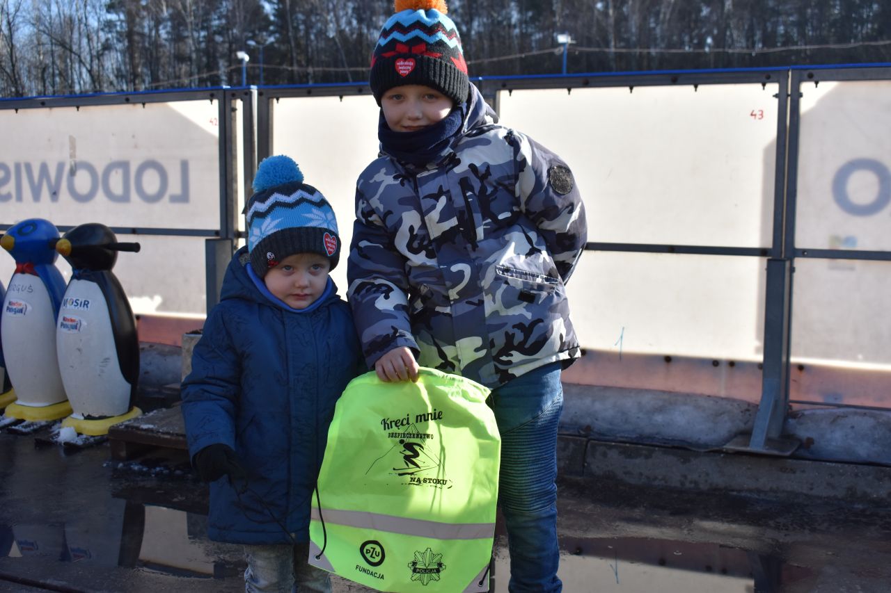 Oprócz krótkiej prelekcji strażacy zaprezentowali pokaz ratownictwa lodowego przy użyciu specjalistycznego sprzętu. A na koniec policjanci rozdali uczestnikom odblaski dla poprawy ich bezpieczeństwa na drodze.