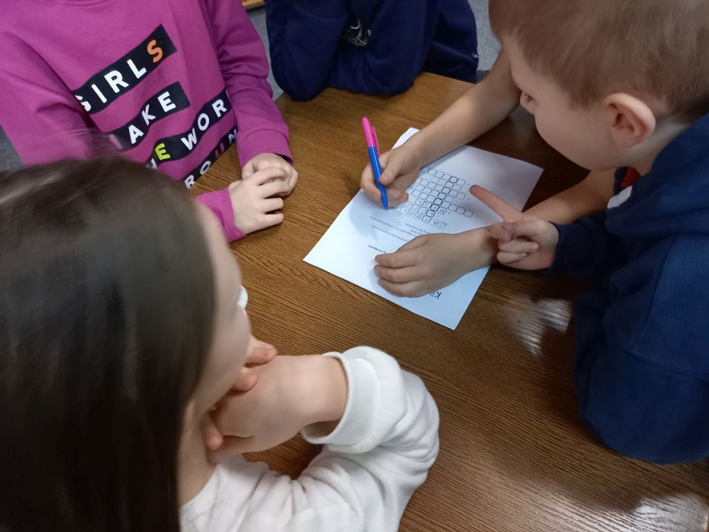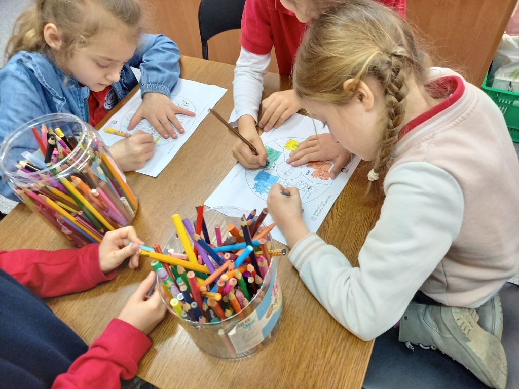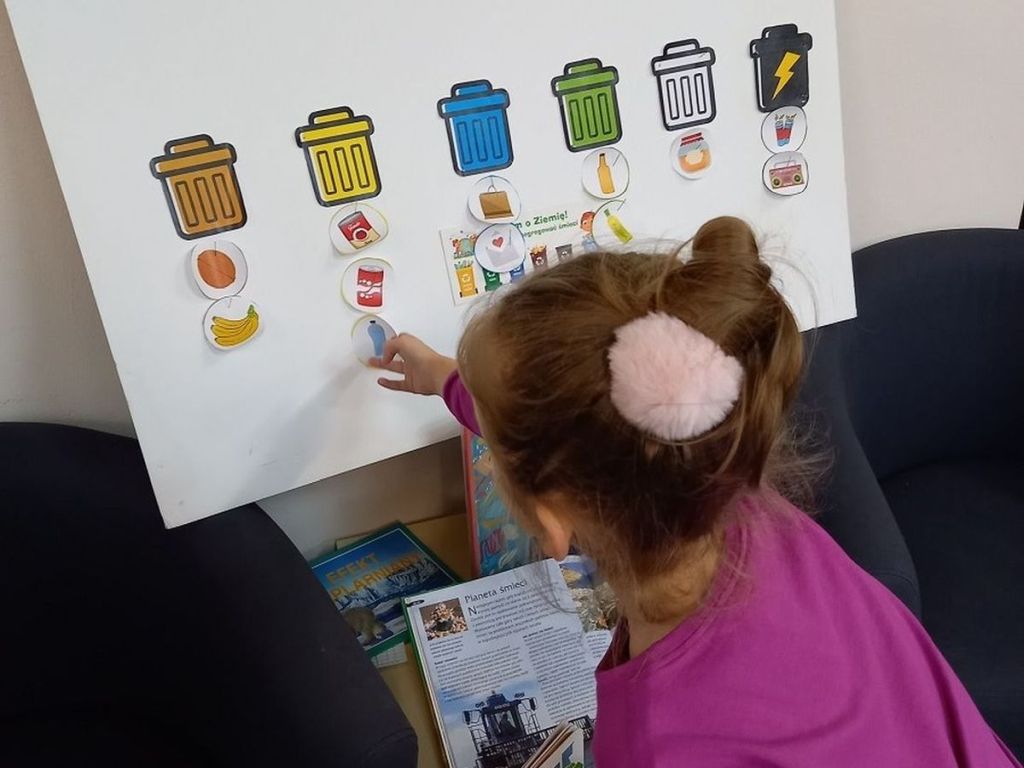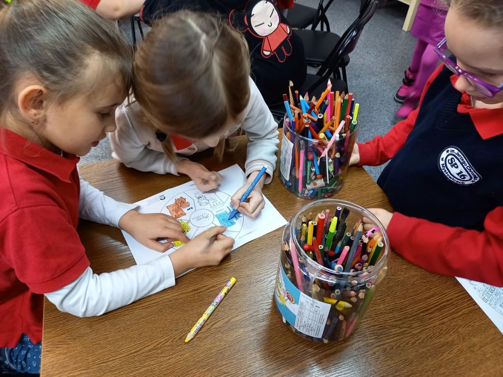 Uczestniczący w warsztatach uczniowie klasy pierwszej Szkoły Podstawowej nr 16 z Kosztów poznali podstawowe zasady segregacji odpadów, a także proces odzyskiwania surowców z produktów odpadowych i wykorzystywania ich do produkcji nowych, poszukiwanych towarów. W ramach ćwiczeń dydaktycznych pierwszoklasiści przyporządkowywali do odpowiednich pojemników różne odpady, a na zakończenie rozwiązywali krzyżówkę i kolorowali obrazek „Piątka za segregację”.
