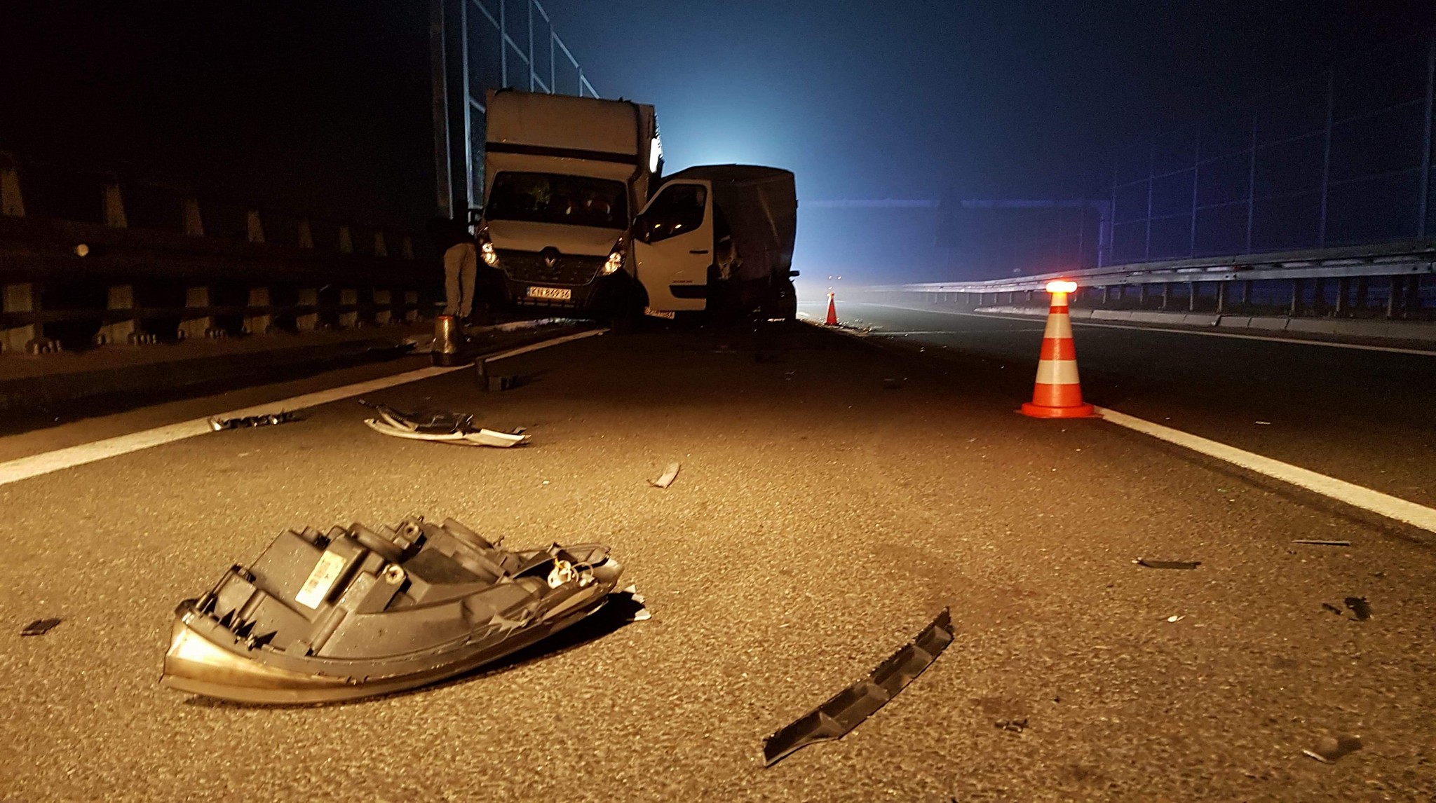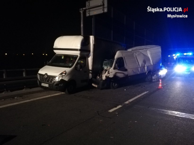 Policjanci z mysłowickiej drogówki wyjaśniają szczegółowe okoliczności wypadku, do którego doszło w poniedziałek (18.02) około 22.30 w Mysłowicach na zjeździe z autostrady A4 na trasę S1 w kierunku na Tychy. Kierujący samochodem dostawczym z nieustalonych przyczyn najechał na stojące na pasie awaryjnym Renault. Następnie w stojące w poprzek drogi Iveco uderzył kierujący Mazdą.