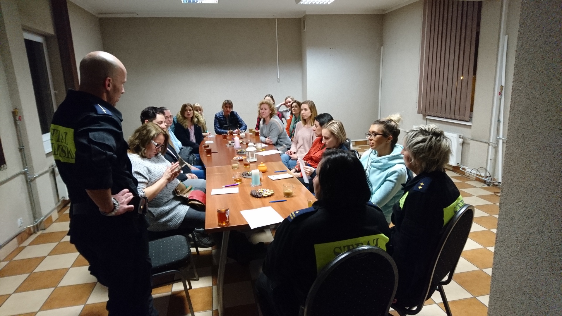 Pierwsze spotkanie odbyło się 4 lutego w komendzie, gdzie przy skromnym poczęstunku komendant Magdalena kawka przywitała uczestniczki szkolenia i omówiła założenia programu szkoleniowego.