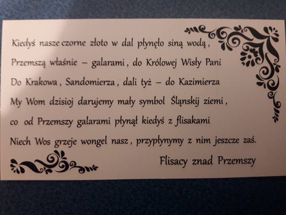 Na galę zabieramy nasze Ślonskie czorne złoto, którym obdarujemy uczestników. Będziemy mieli zaszczyt tam reprezentować flisakow znad rzeki Przemszy, nasz ukochany Śląsk, rodzinne miasto Mysłowice oraz górniczą brać. Czujemy się jak ambasadorzy Śląskiej Ziemi – pisze na portalu społecznościowym Jacek Paris