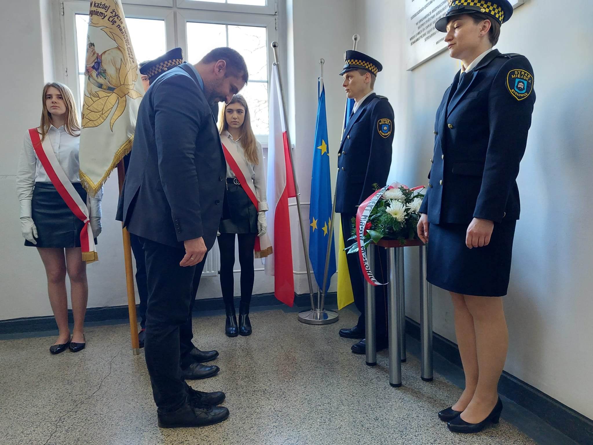 W uroczystości wzięli udział Zastępca Prezydenta Miasta Mysłowice Wojciech Chmiel, radni Rady Miasta Mysłowice: Andrzej Dombek, Edward Lasok, Wiesław Tomanek, Piotr Styczeń i Sebastian Roncoszek, Komendant Straży Miejskiej Dawid Skutela, Dyrektor Muzeum Miasta Mysłowice Adam Plackowski, Dyrektorka I Liceum Ogólnokształcącego Dorota Konieczny-Simela wraz z Wicedyrektorką Martą Drewnicką.