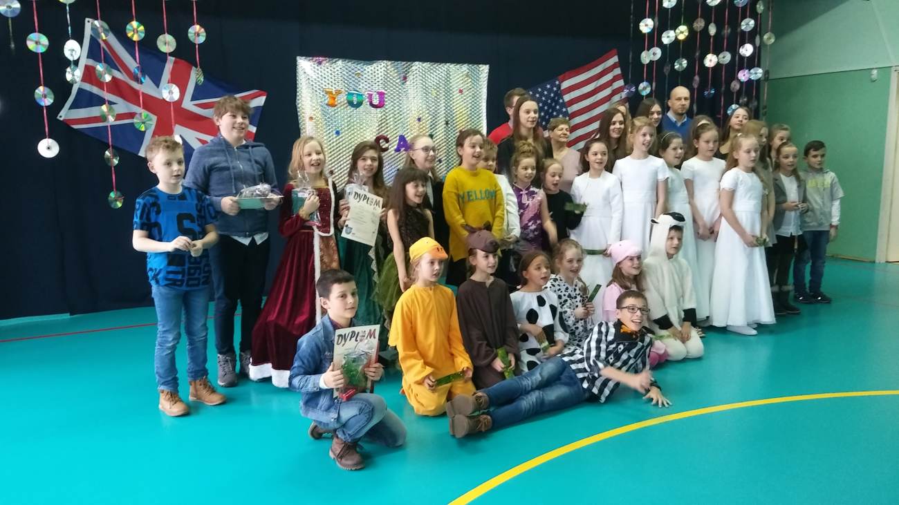 Pojawiły się przebrane zwierzątka z farmy McDonalda, piękne księżniczki, soliści z ukulele i gitarami. W sumie w konkursie wzięło udział 30 uczestników z 8 szkół. Zamiast I i II miejsca jury przyznało 2 x pierwsze miejsce w każdej kategorii. Poniżej prezentujemy wyniki konkursu:
