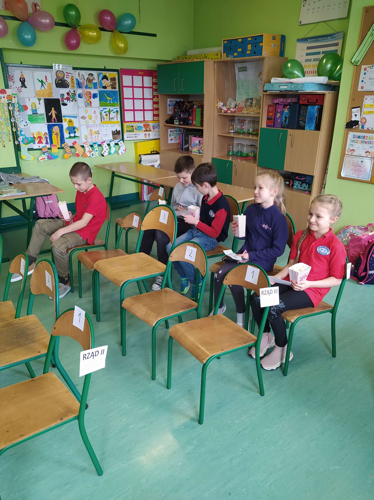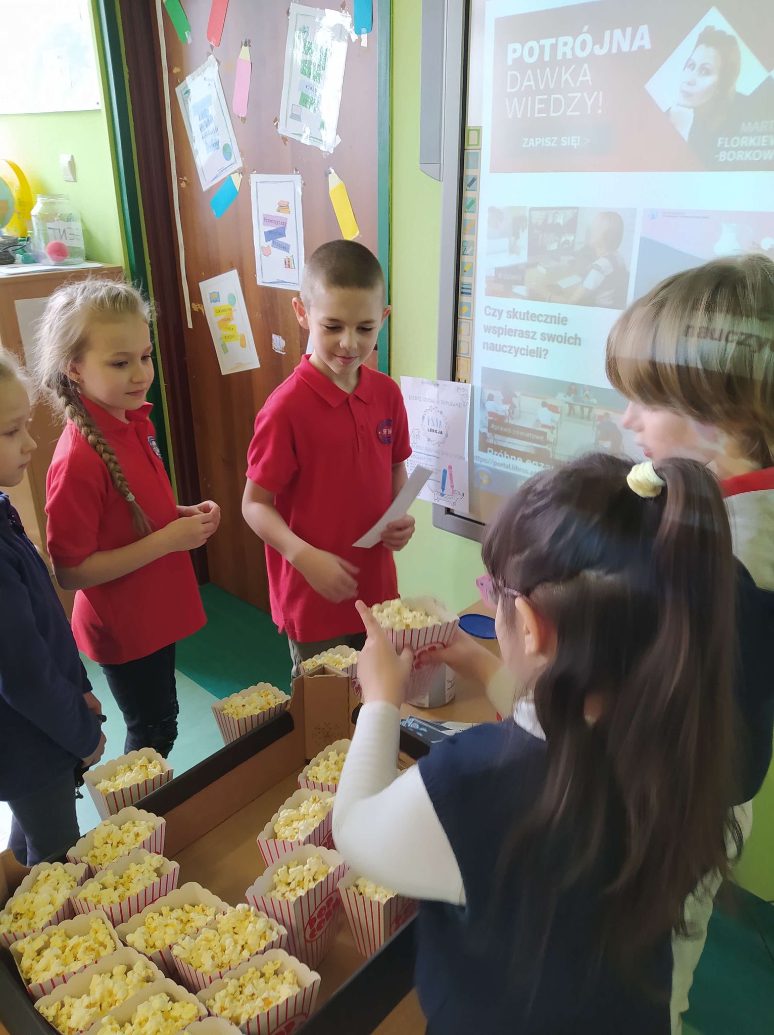Uczniowie najmłodszych klas w ostatnim czasie mieli okazję wziąć udział w projekcji filmu animowanego „Śnieżna paczka” oraz spektaklu teatralnym online „Pchła Szachrajka”. Były prawdziwe kasy i bilety, sala z oznaczonymi miejscami, popcorn, kurtyna, antrakt czy eleganckie stroje. Dzieci bawiły się wyśmienicie. Miały okazję nie tylko wejść w rolę widzów, ale również bileterów, kasjerów czy sprzedawców. Co ważne, w czasie wydarzeń udało się zebrać kwotę 851 zł, która w całości została przekazana na rzecz stowarzyszenia „Zwierzęta ludziom” na dogoterapię dzieci w szpitalach. Organizatorzy spektaklu i seansu filmowego składają serdeczne podziękowania wszystkim rodzicom i uczniom, którzy tak hojnie wsparli zorganizowaną przez SP16 akcję charytatywną.