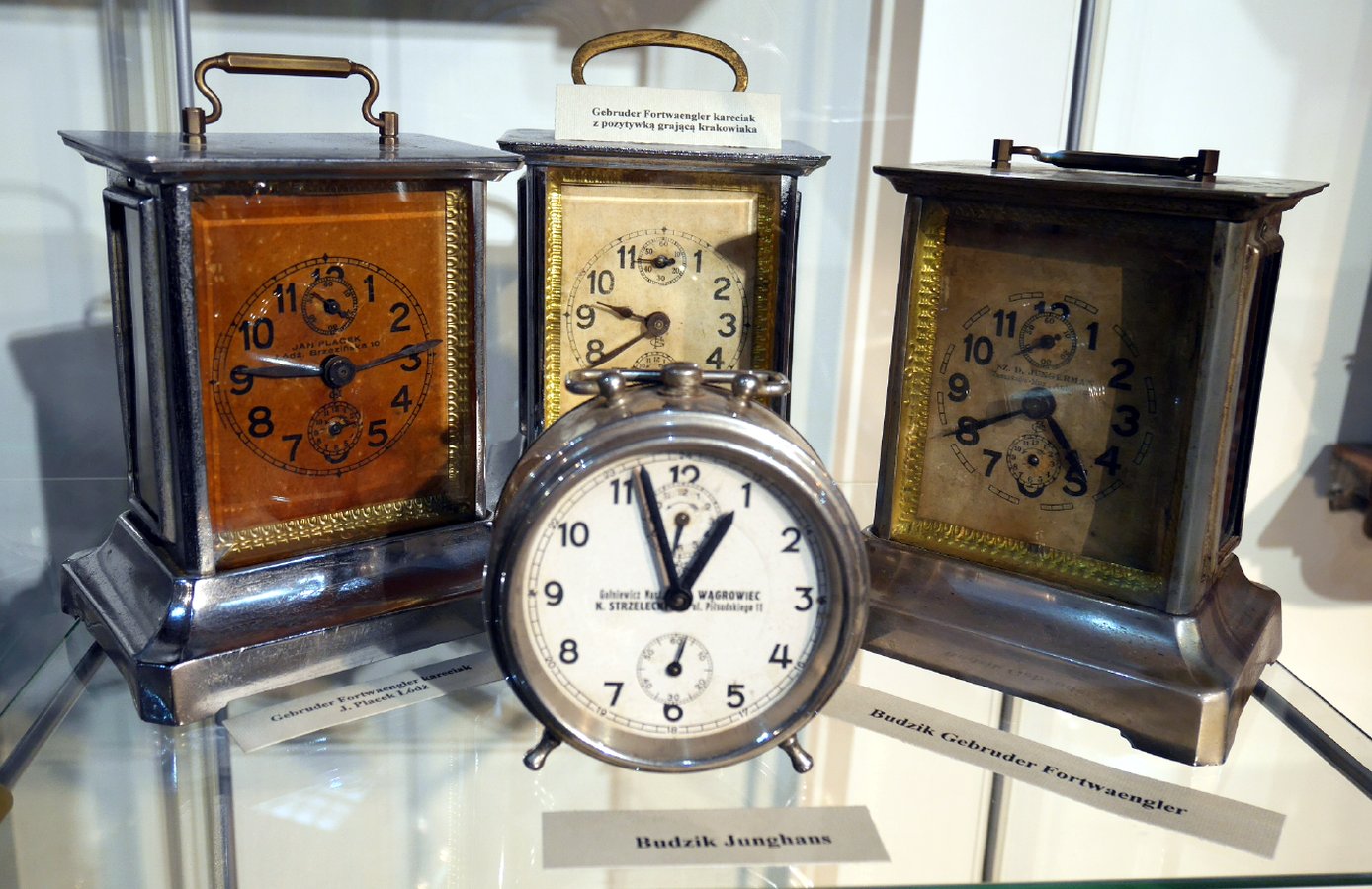 Wśród prezentowanych zegarów pojawiły się wiszące zegary ścienne, naręczne, kieszonkowe oraz budziki najbardziej znanych, przedwojennych, polskich zegarmistrzów: Ferdynanda Woronieckiego, Władysława Grabau czy Aleksandra Sulikowskiego.
