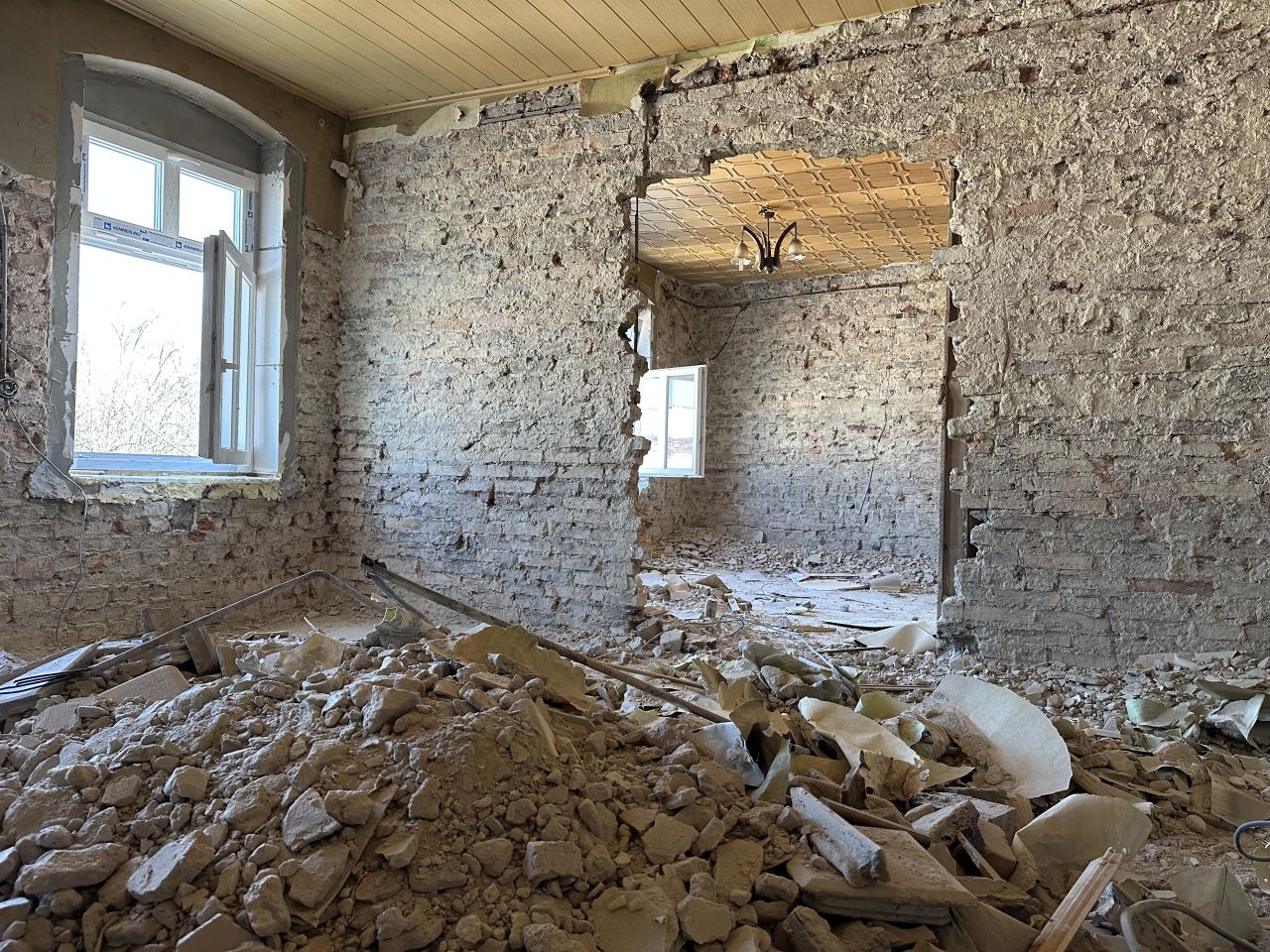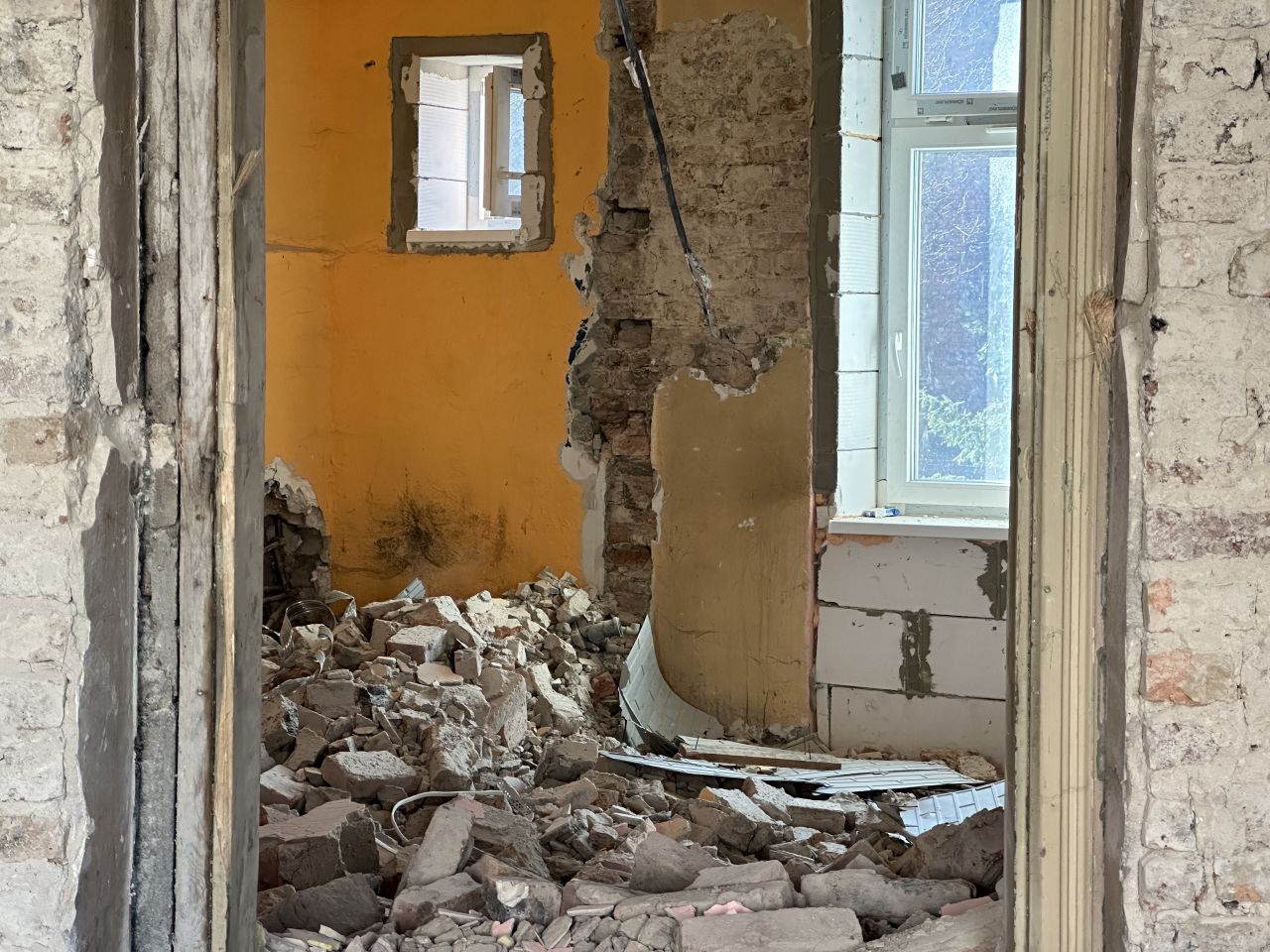 Tak obszerna inwestycja nie byłaby możliwa, gdyby obiekt nie był wcześniej wycofany z eksploatacji. Obecnie w budynku trwa wyburzanie niektórych ścian i kucie tynków.