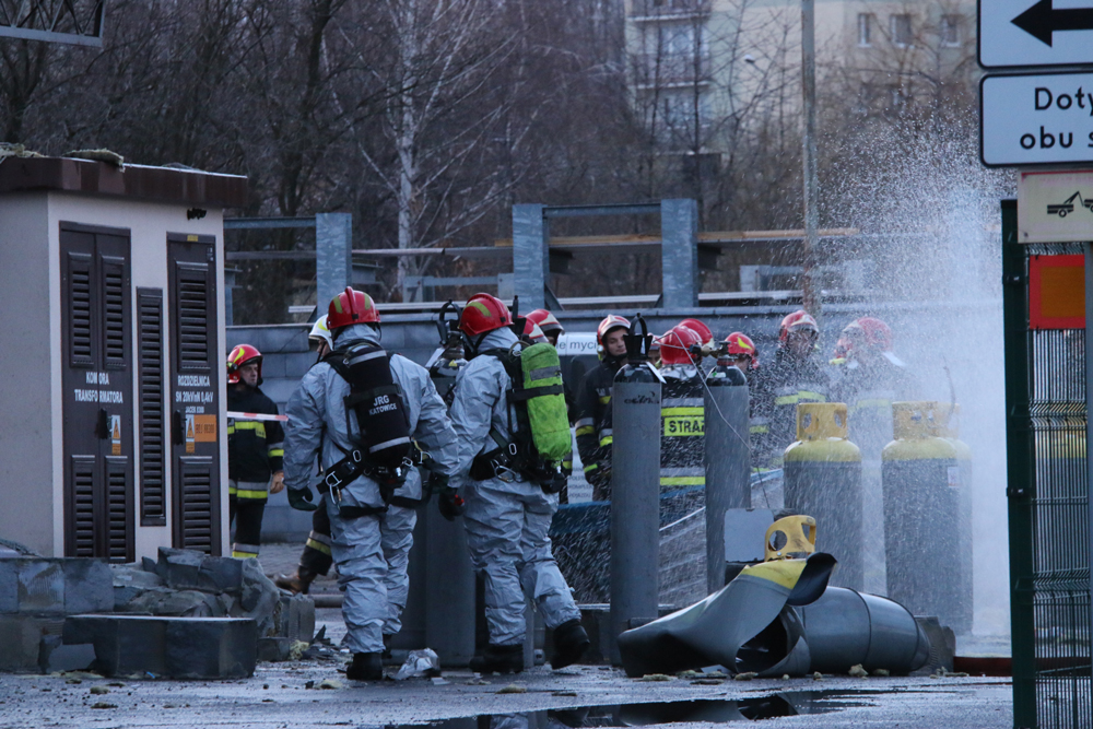 Ewakuowano pracowników dwóch zakładów, w sumie 69 osób. W akcji uczestniczyło 9 zastępów straży pożarnej. Wszystko z powodu wybuchu butli z amoniakiem w jednej z firm przy ul. Karola Miarki 36.