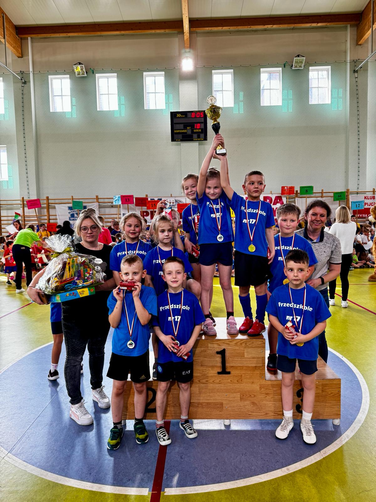 Przedszkolaki rywalizowały m.in. w biegu z przekazywaniem pałeczki, „skaczących żabkach” czy „zbieraniu ziemniaków”. Zwyciężyło Przedszkole nr 17, którego podopieczni cieszyli się z okazałego pucharu. Drugie miejsce zajęły maluchy z „Piętnastki”, a trzecie z „Piątki”.