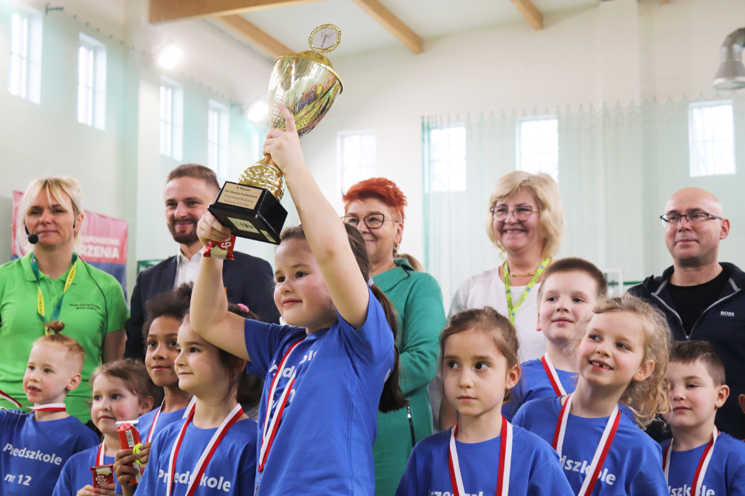 Przedszkolaki rywalizowały m.in. w biegu z przekazywaniem pałeczki, „skaczących żabkach” czy „zbieraniu ziemniaków”. Zwyciężyło Przedszkole nr 15, którego podopieczni cieszyli się z okazałego pucharu. Drugie miejsce zajęły maluchy z „Dwunastki”, a trzecie z „Piątki”.