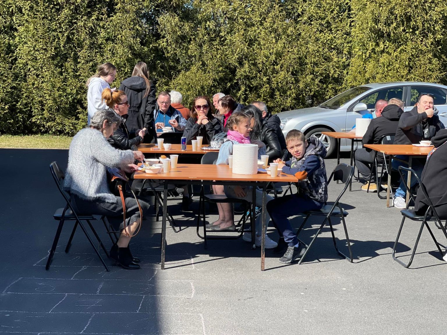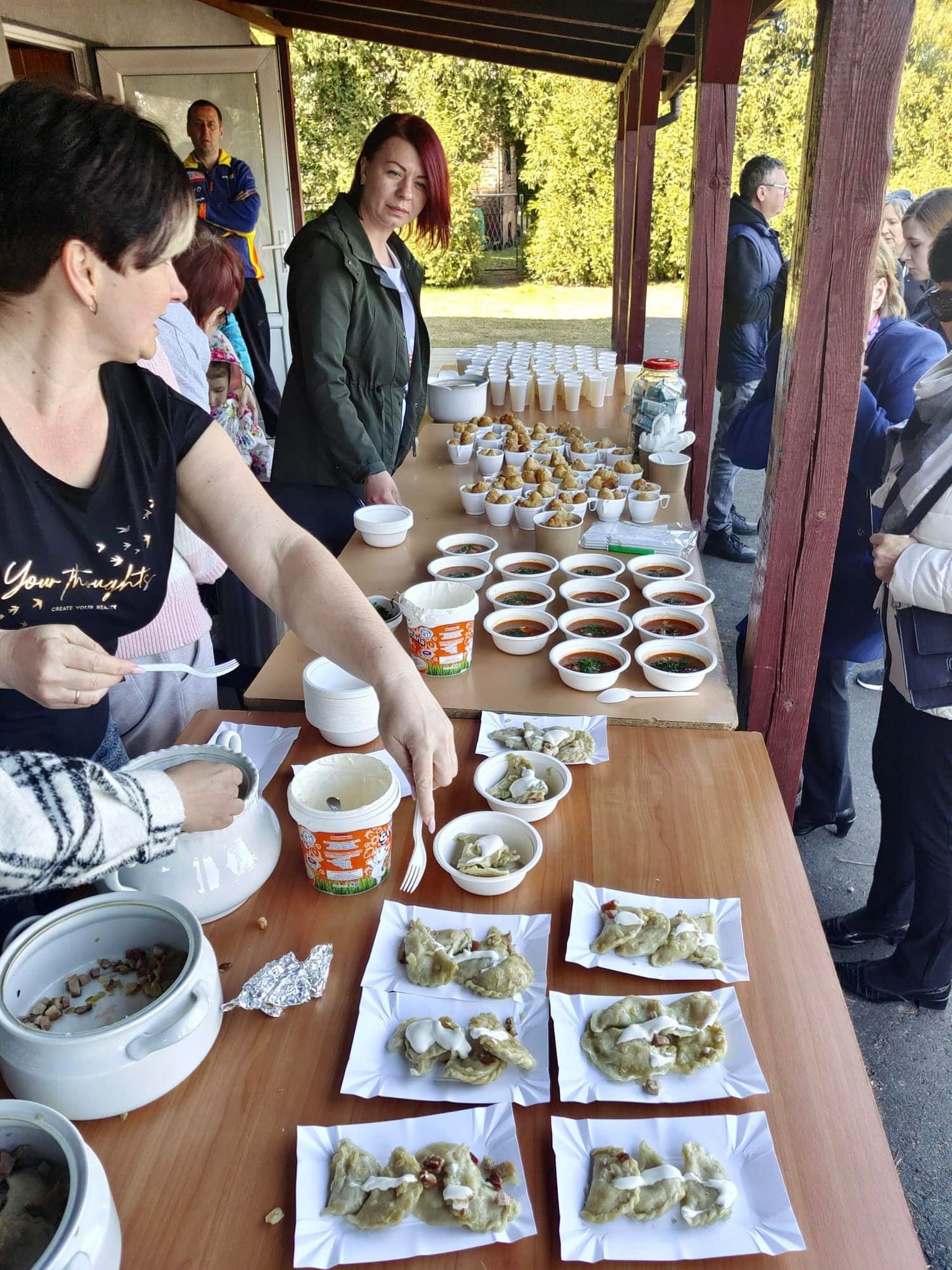 Ukrainki, które podczas ucieczki przed wojną znalazły schronienie w remizie Ochotniczej Straży Pożarnej na Kosztowach, postanowiły odwdzięczyć się mieszkańcom dzielnicy za ich hojność i w niedzielne popołudnie zaprosiły ich na poczęstunek. Był barszcz ukraiński, pierogi z kapustą albo z kartoflami, naleśniki z serem, czosnkowe pampuszki oraz kompot z suszonych jabłek i gruszek. Podczas degustacji mysłowiczanie wsparli finansowo rodziny z Ukrainy, wrzucając symboliczne datki do słoika.