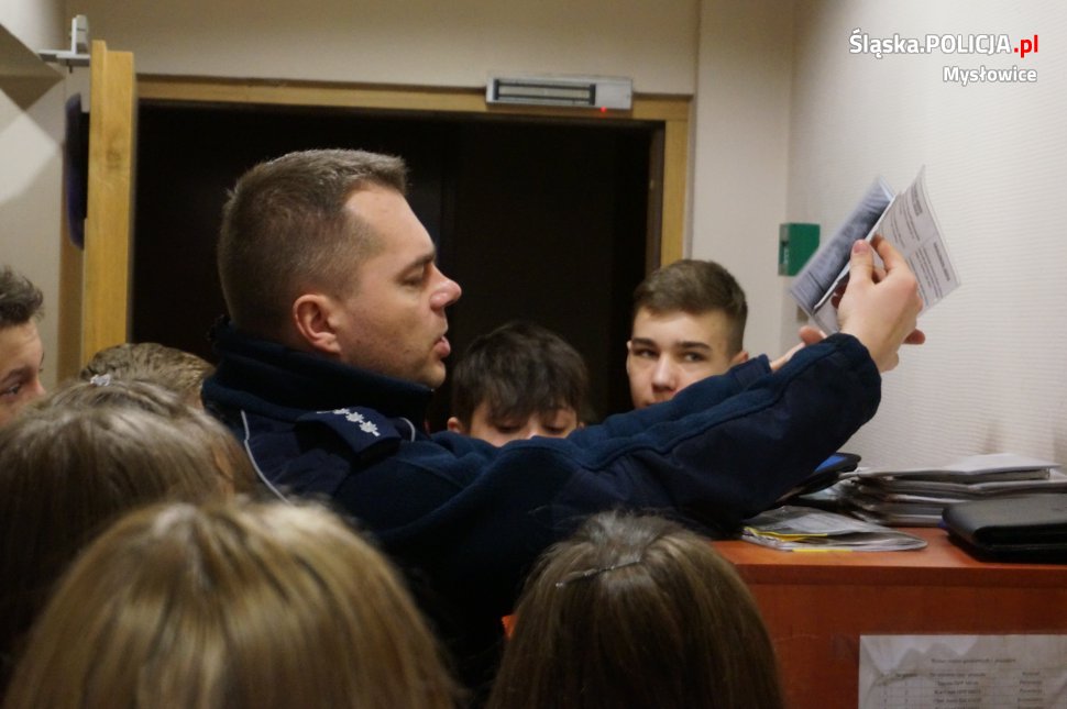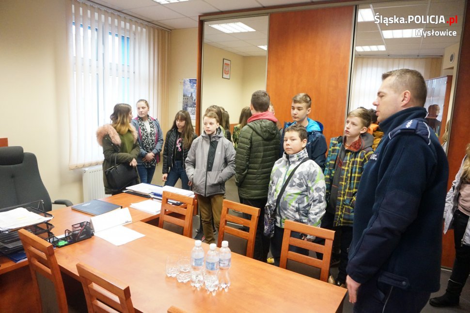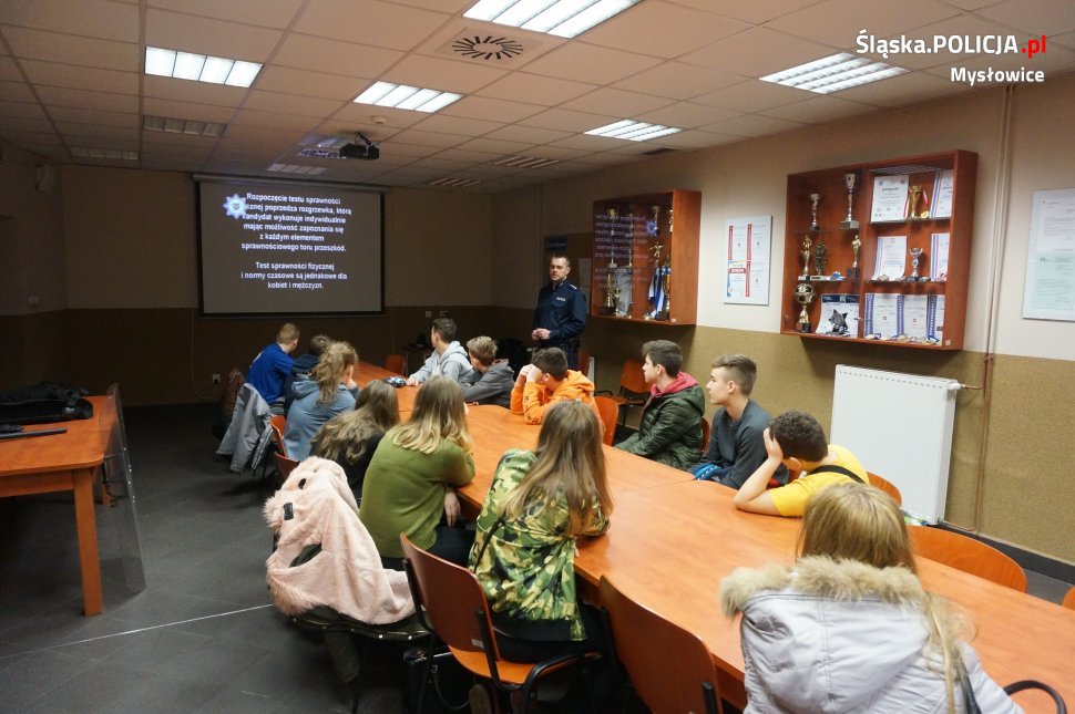 Funkcjonariusze odpowiadali na pytania: kto może wstąpić w szeregi mundurowych, jakie są wymagane dokumenty, jak wyglądają kolejne etapy i jak się do tego wszystkiego przygotować. Ponadto młodzież tego dnia została oprowadzona po budynku i terenie mysłowickiej komendy. Chętni uczniowie mogli zasiąść za kierownicą policyjnego radiowozu oraz odwiedzić pokój komendanta mysłowickich stróżów prawa.