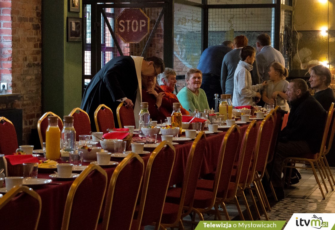 Wigilijne spotkania w Szybie Bończyk to już tradycja. Od kilku lat spotykają się tam samotni i najbardziej potrzebujący mieszkańcy, dla których świąteczna wieczerza jest wspaniałym doświadczeniem ludzkiej życzliwości. W tym roku organizatorzy po raz drugi zaprosili najbardziej potrzebujących mysłowiczan na śniadanie wielkanocne. Do stołu zasiadło około 30 osób.