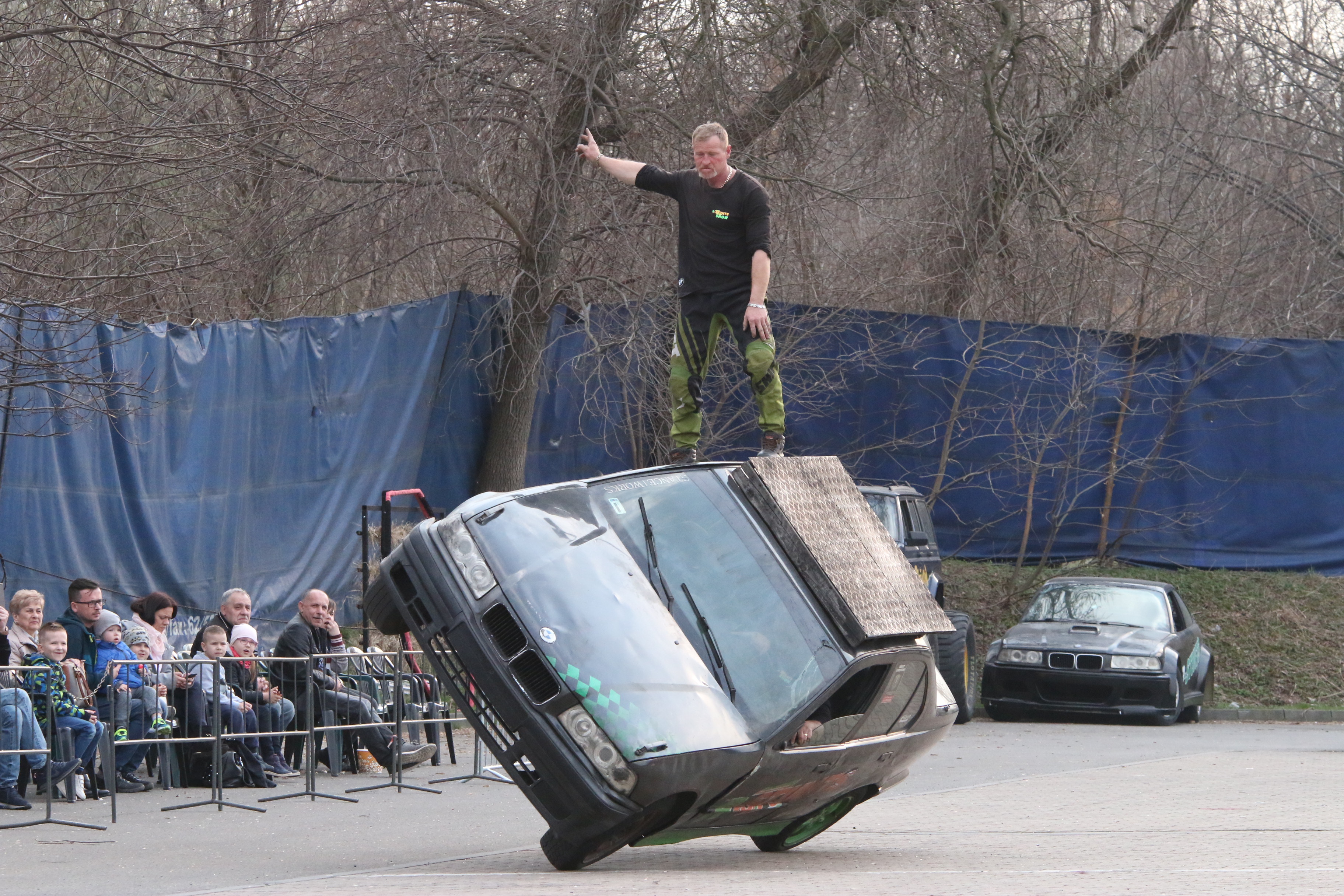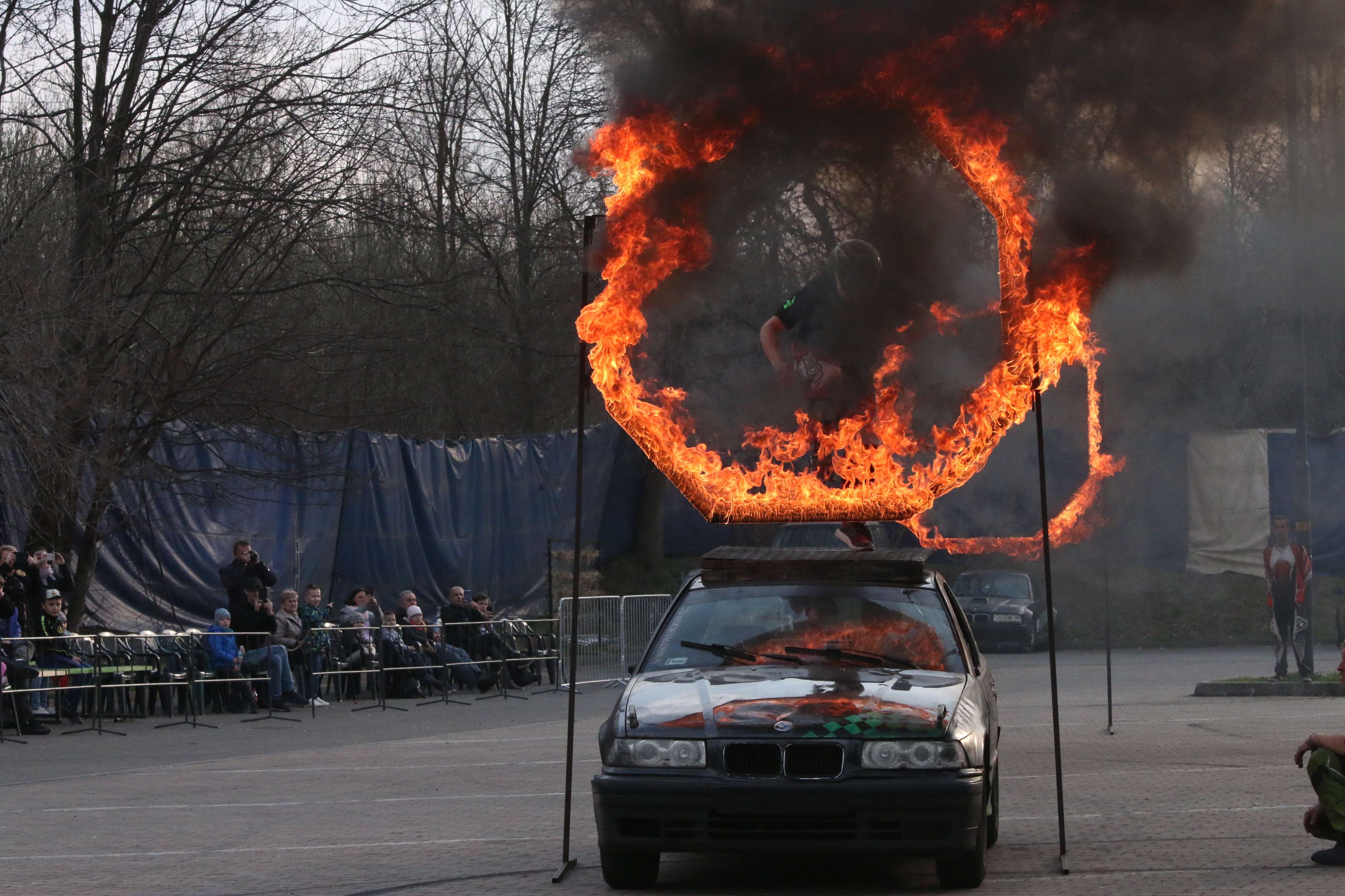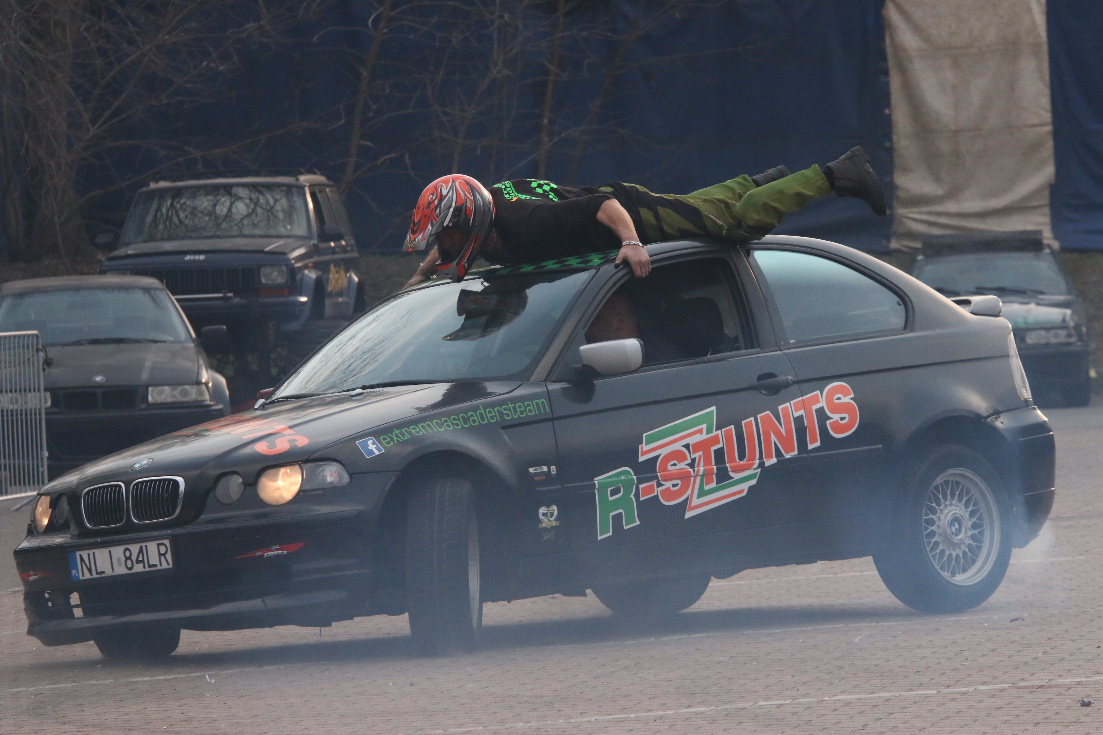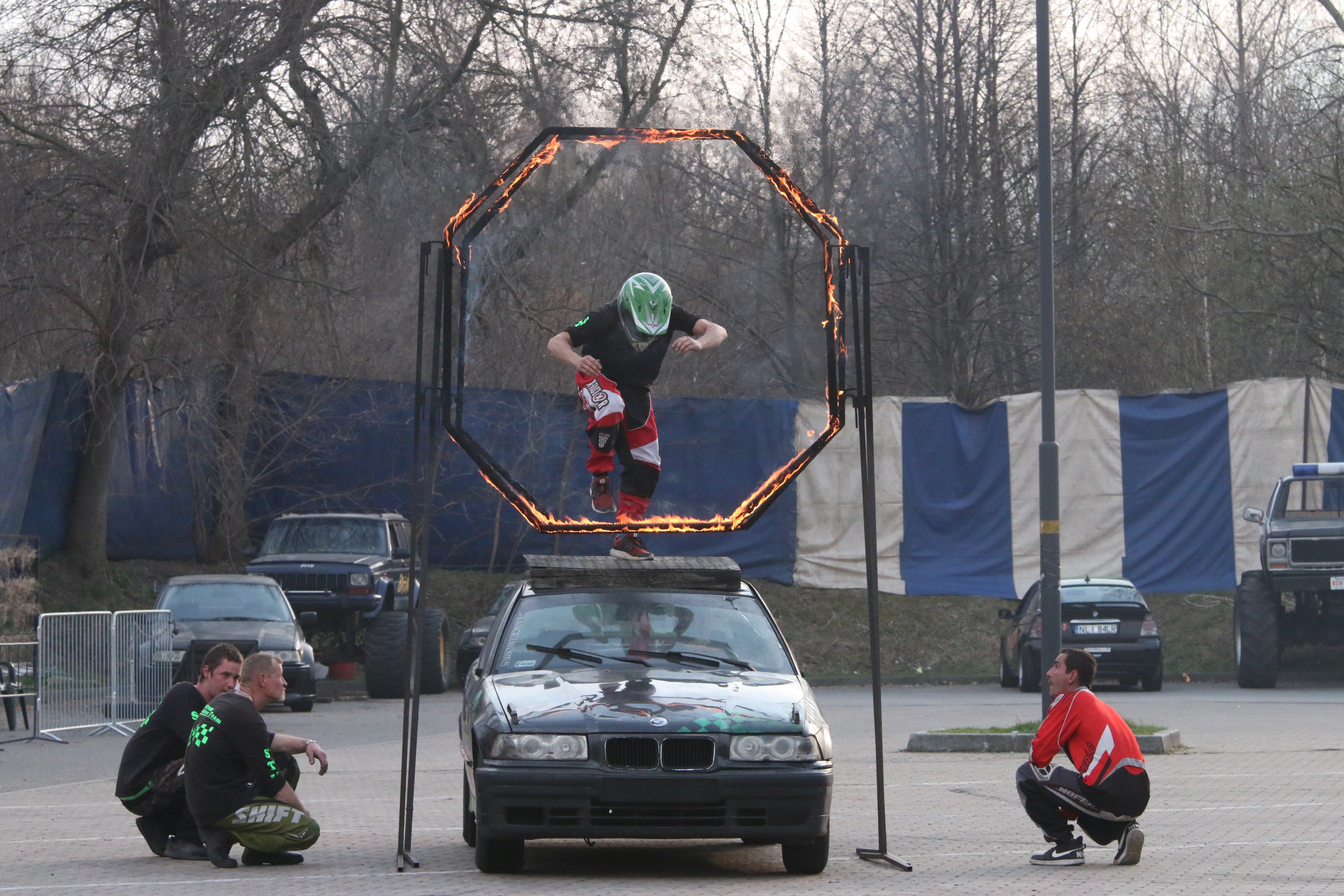 Publiczność miała okazję zobaczyć drifty, także te z parkowaniem pomiędzy dwoma samochodami, jazdę i slalomy na dwóch kołach, a nawet kaskadera przeskakującego na dachu auta przez palącą się obręcz czy przebijającego głową ścianę ognia. Jednego z członków Extrem Cascaders Team zapytaliśmy o to, jakie trzeba mieć predyspozycje, by zostać samochodowym kaskaderem.