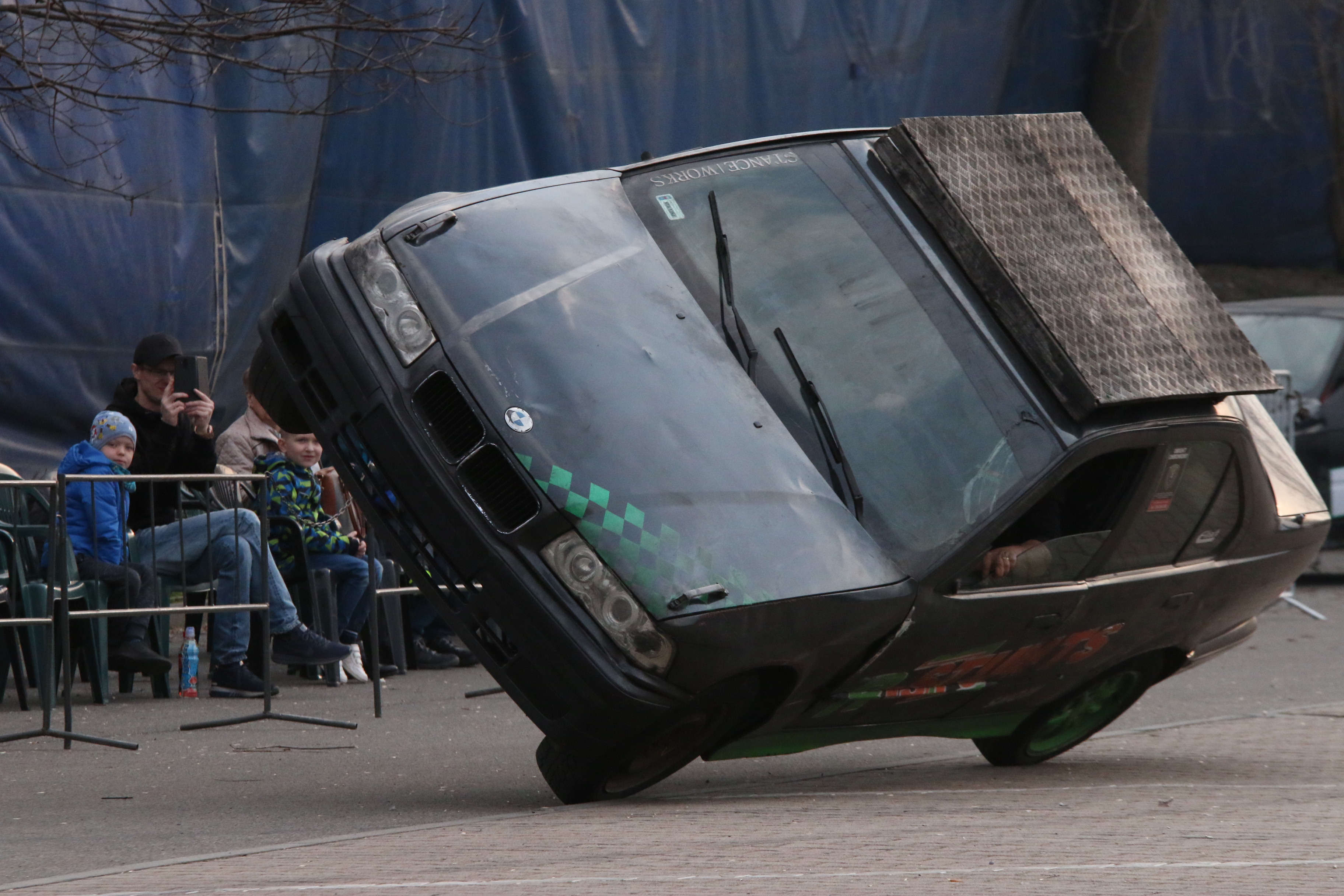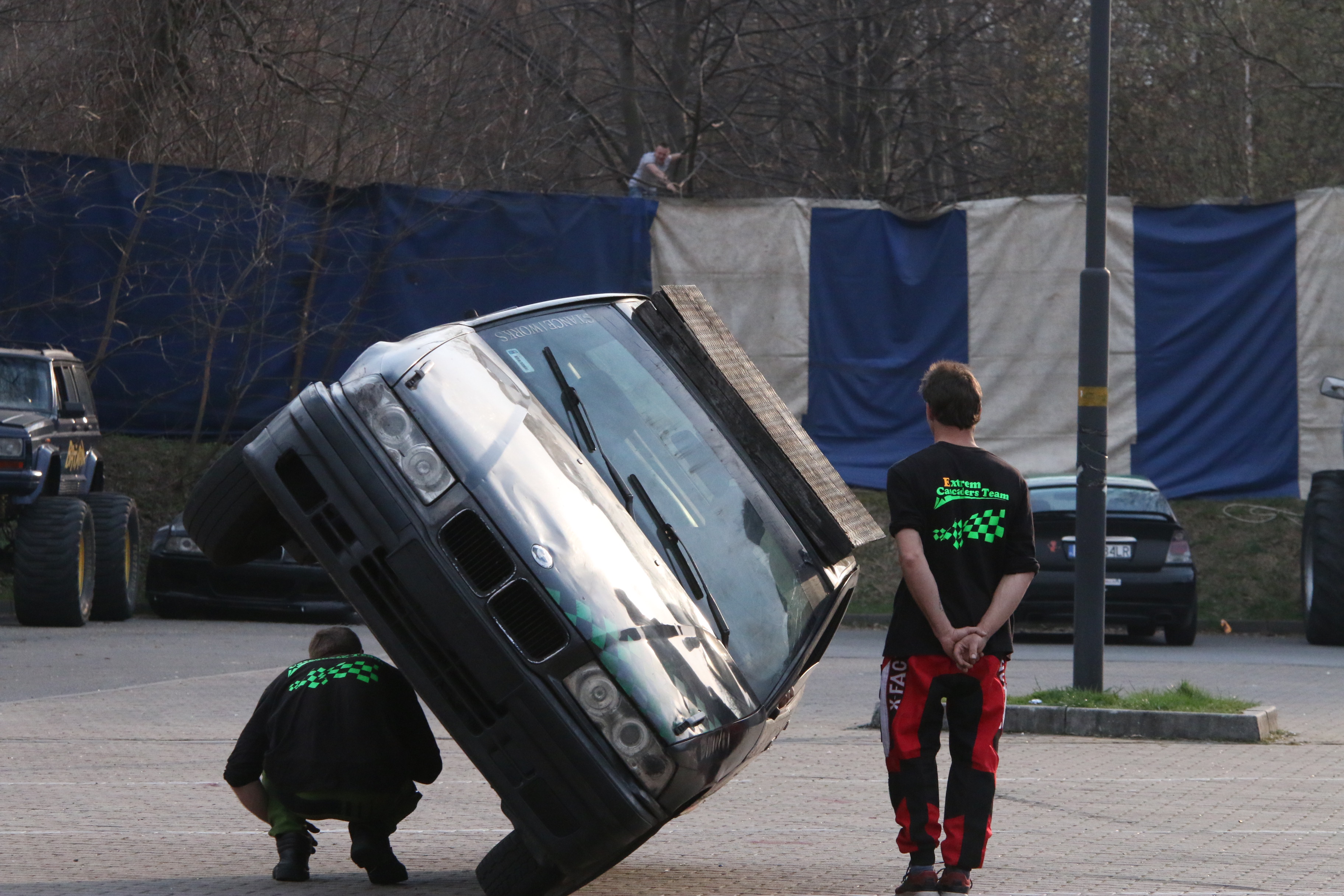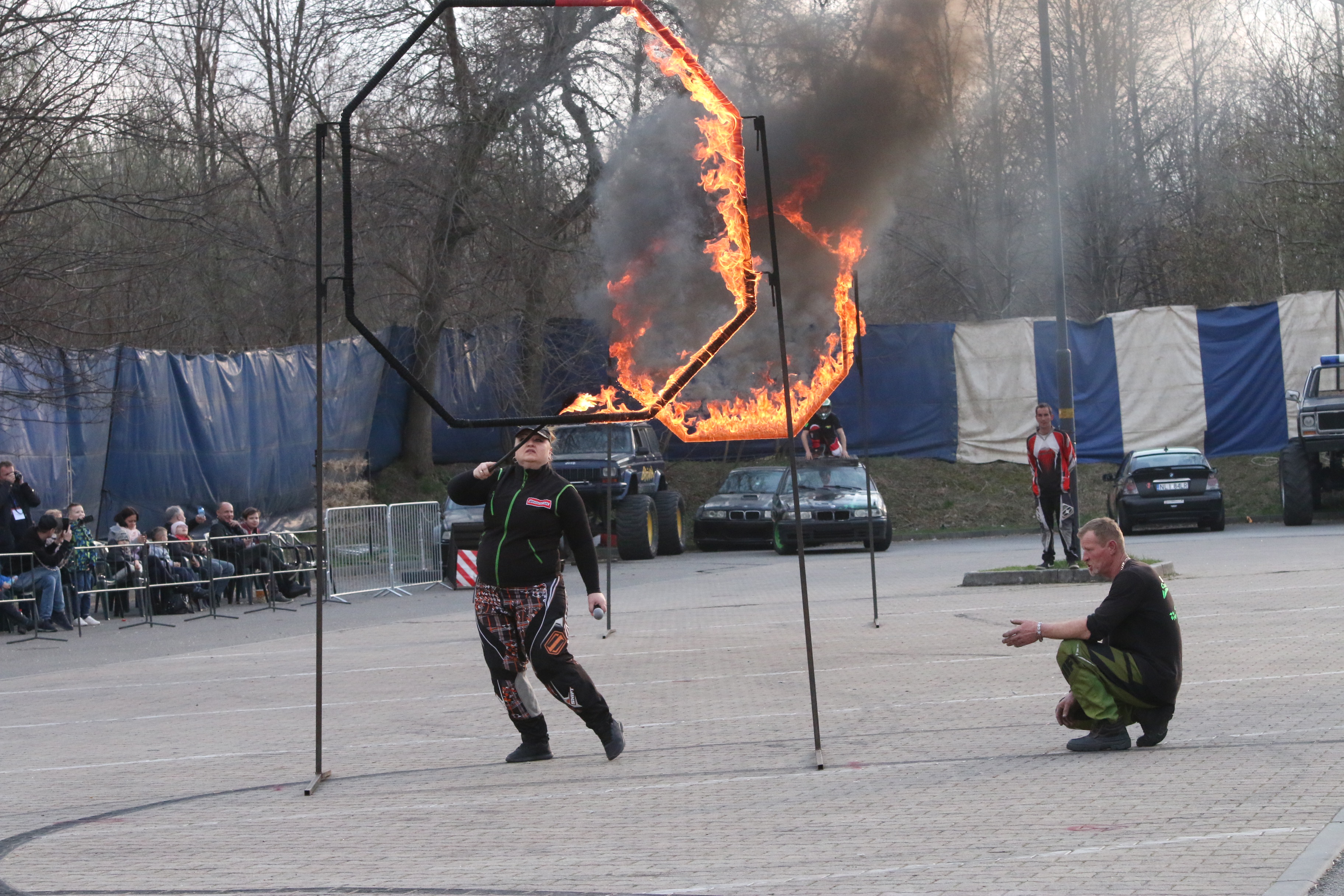 Publiczność miała okazję zobaczyć drifty, także te z parkowaniem pomiędzy dwoma samochodami, jazdę i slalomy na dwóch kołach, a nawet kaskadera przeskakującego na dachu auta przez palącą się obręcz czy przebijającego głową ścianę ognia. Jednego z członków Extrem Cascaders Team zapytaliśmy o to, jakie trzeba mieć predyspozycje, by zostać samochodowym kaskaderem.