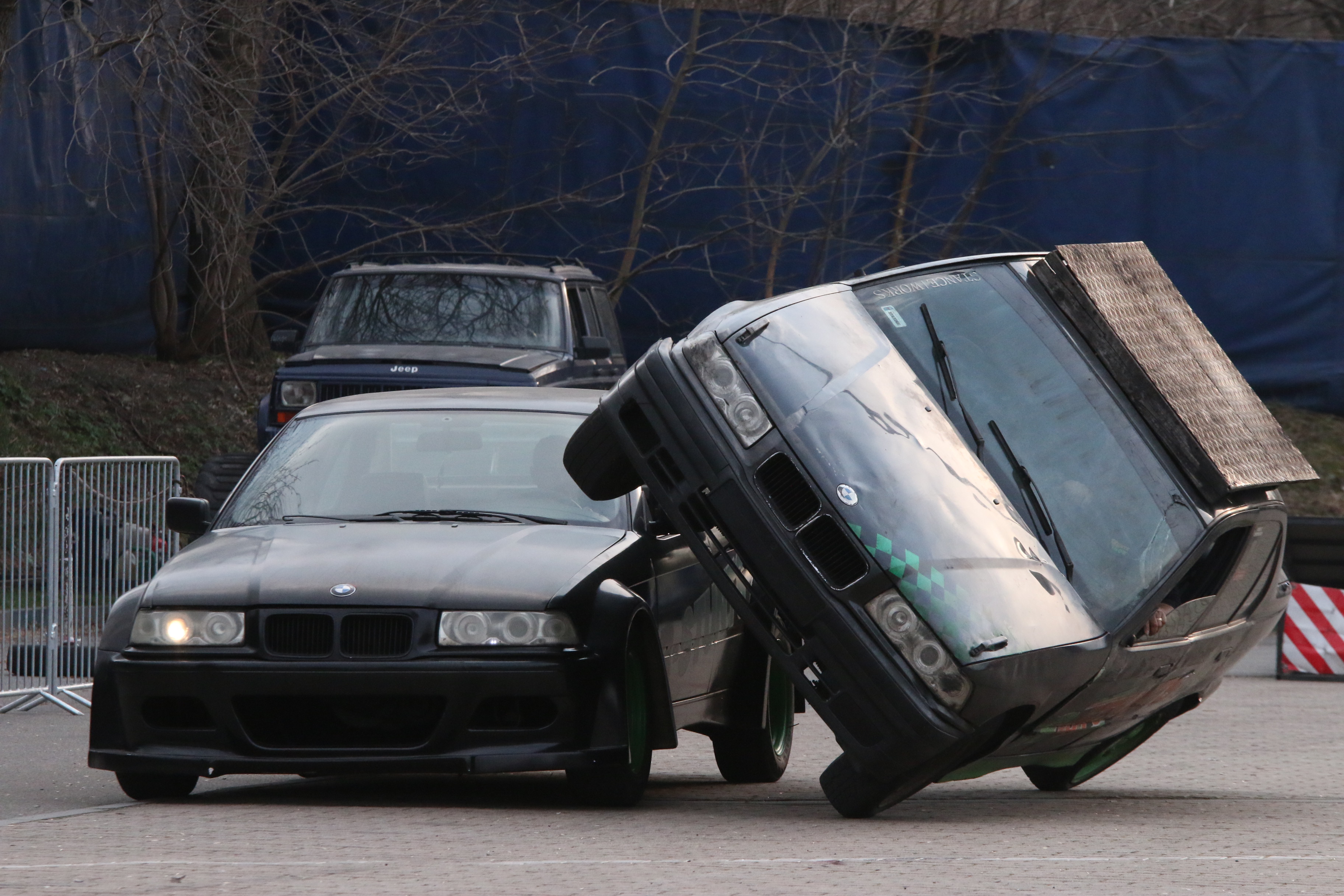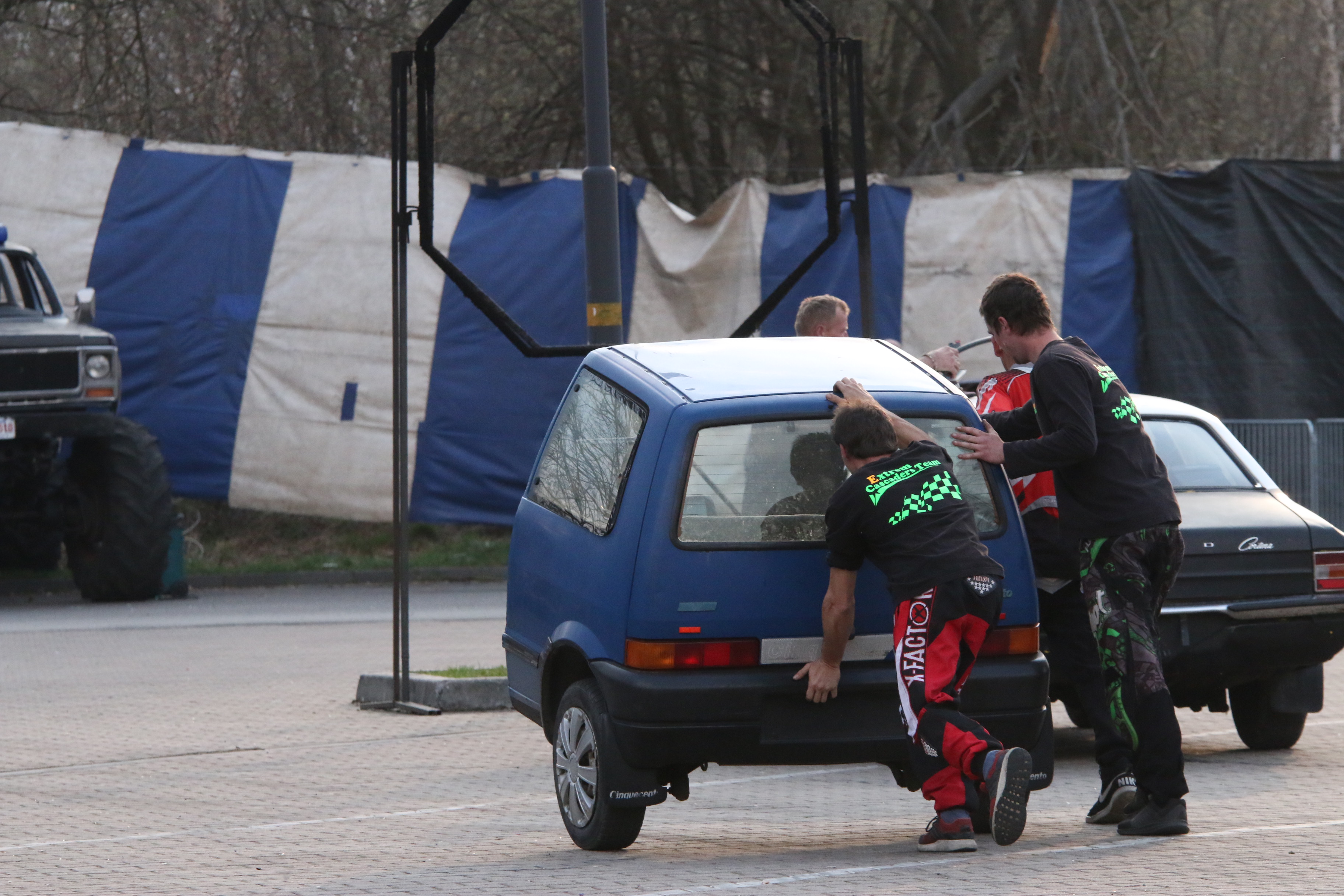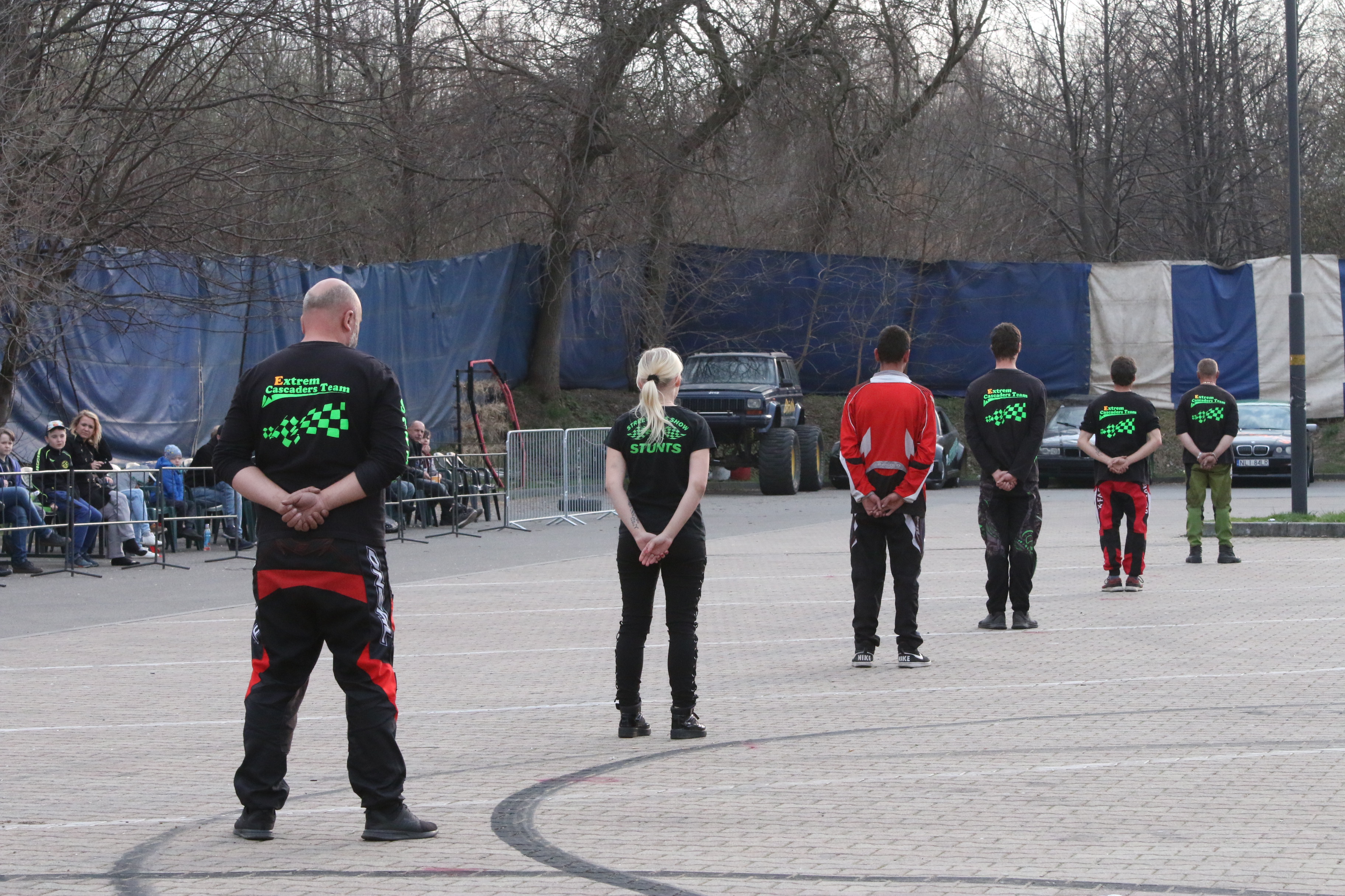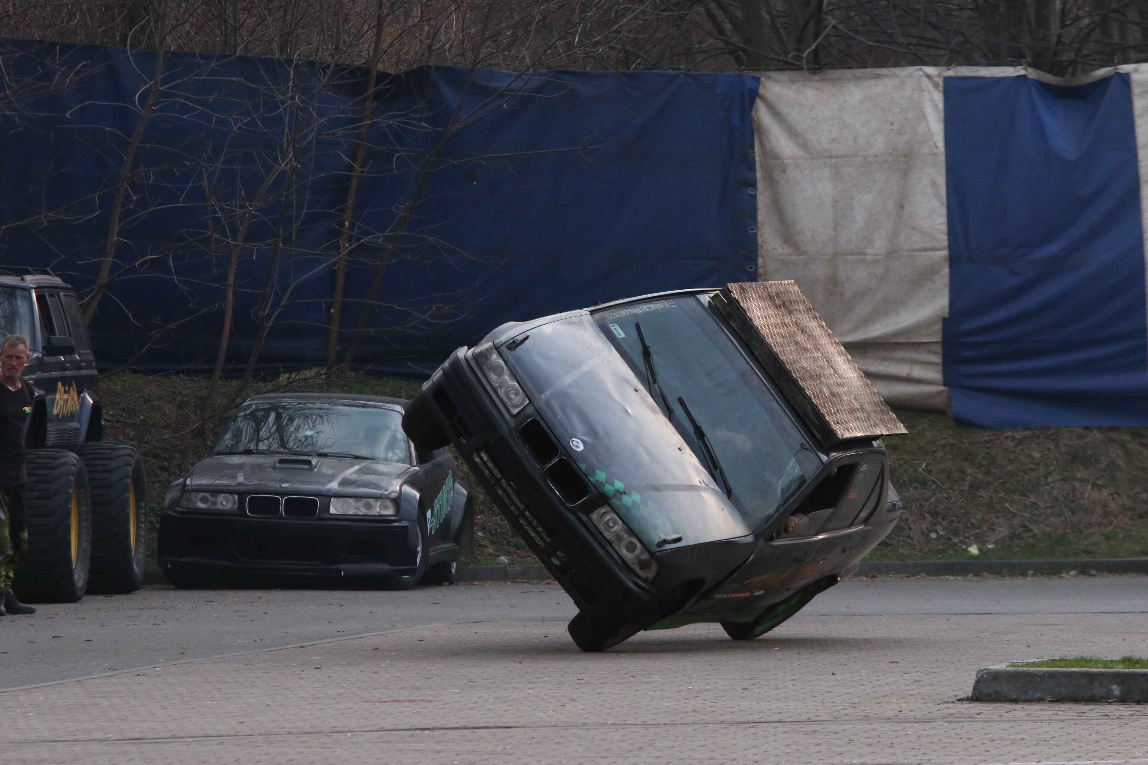 Publiczność miała okazję zobaczyć drifty, także te z parkowaniem pomiędzy dwoma samochodami, jazdę i slalomy na dwóch kołach, a nawet kaskadera przeskakującego na dachu auta przez palącą się obręcz czy przebijającego głową ścianę ognia. Jednego z członków Extrem Cascaders Team zapytaliśmy o to, jakie trzeba mieć predyspozycje, by zostać samochodowym kaskaderem.