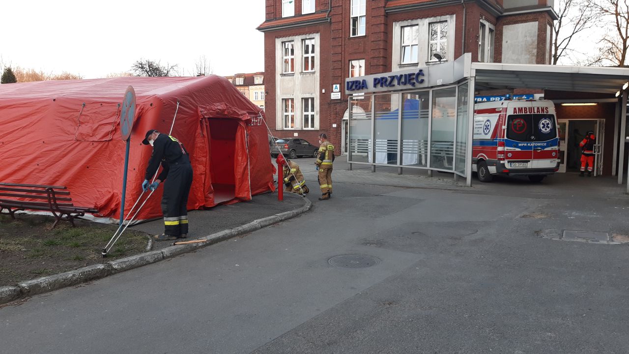 Wczoraj (6.04) na terenie Mysłowickiego Centrum Zdrowia oraz Szpitala nr 2 im. dr. Tadeusza Boczonia w Mysłowicach zostały postawione polowe przedszpitalne izby przyjęć, czyli zewnętrzne izby do wstępnej selekcji pacjentów.