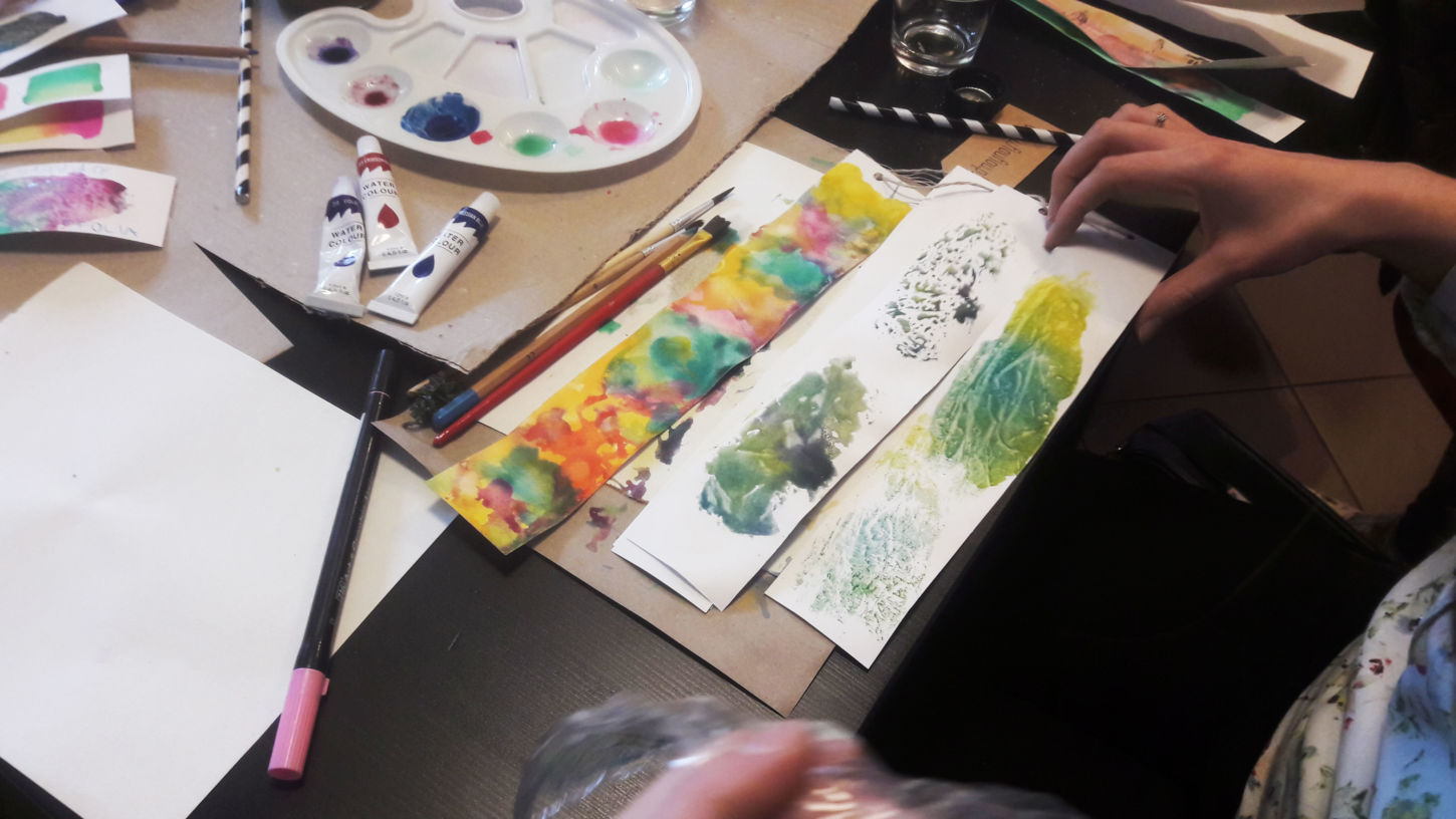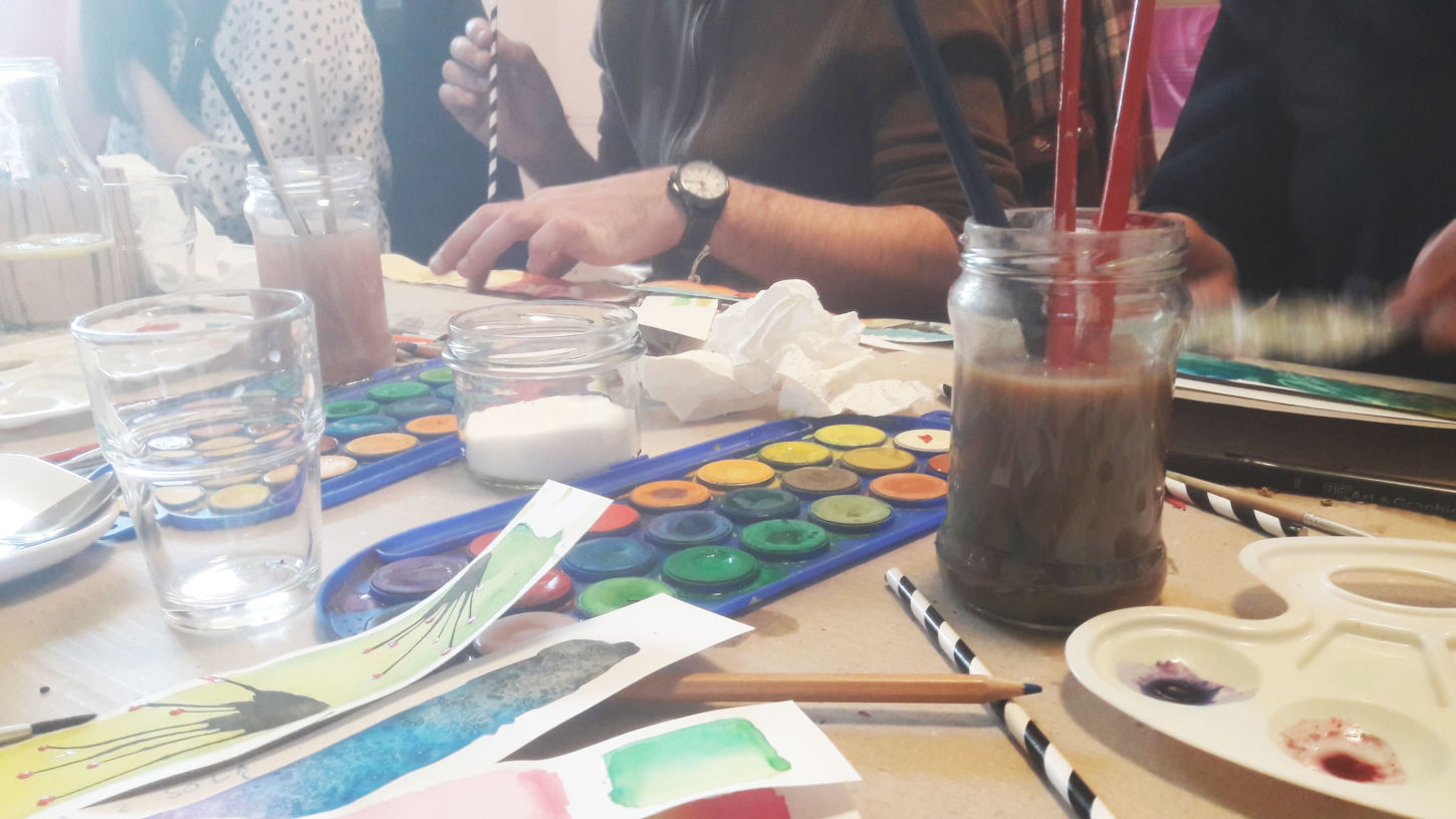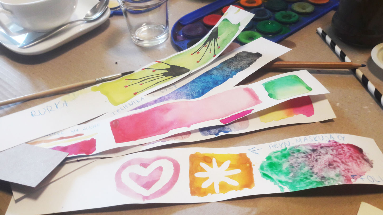 Odrobina historii sztuki, nieco informacji o niezbędnych narzędziach a w reszcie przegląd akwarelowych technik – warsztaty rozpoczęły się teoretycznym wstępem. W tym czasie uczestnicy mieli okazję zrobić także kolorowe próbniki, na których ćwiczyli poszczególne techniki. Mokre na mokre, mokre na suche, z folią, z solą czy przy użyciu rurki – każdy z obecnych na warsztatach artystów-amatorów znalazł swoją ulubioną spośród kilku ciekawych technik.