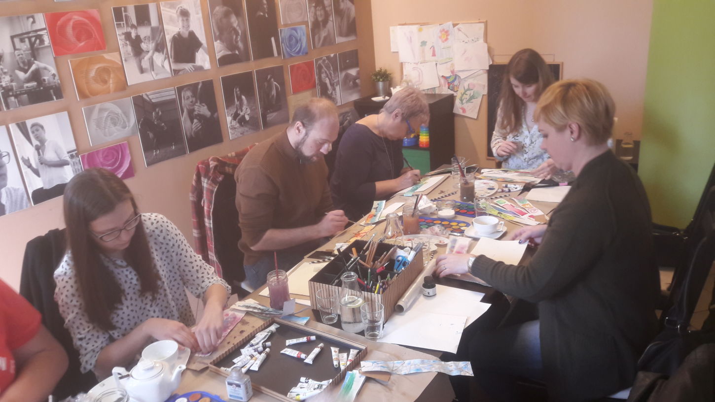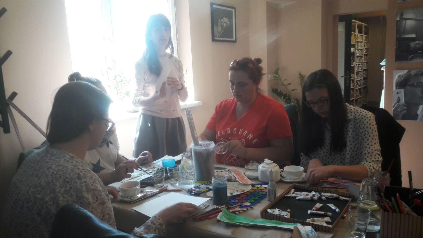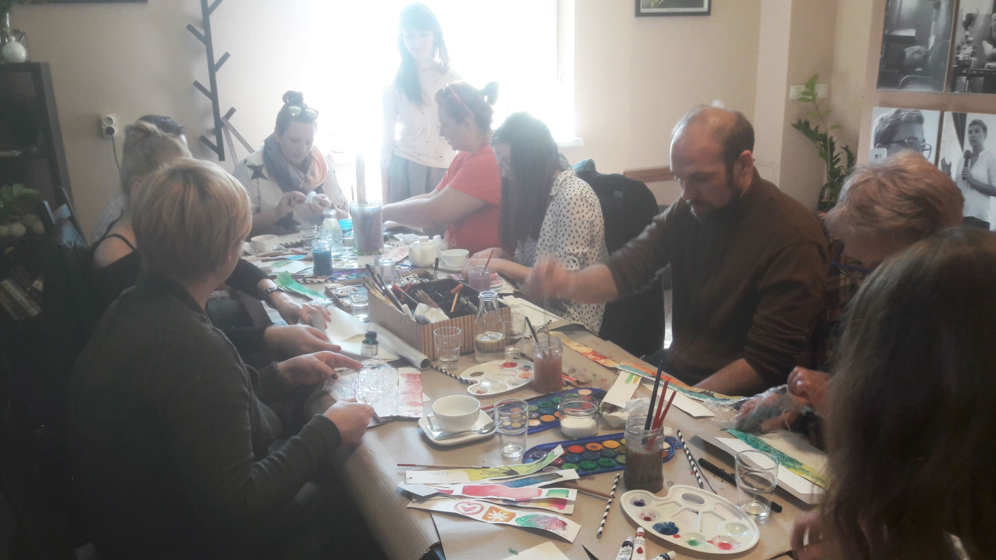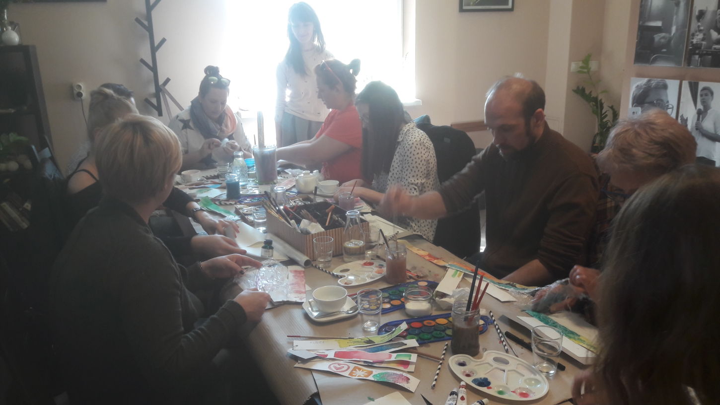 Odrobina historii sztuki, nieco informacji o niezbędnych narzędziach a w reszcie przegląd akwarelowych technik – warsztaty rozpoczęły się teoretycznym wstępem. W tym czasie uczestnicy mieli okazję zrobić także kolorowe próbniki, na których ćwiczyli poszczególne techniki. Mokre na mokre, mokre na suche, z folią, z solą czy przy użyciu rurki – każdy z obecnych na warsztatach artystów-amatorów znalazł swoją ulubioną spośród kilku ciekawych technik.