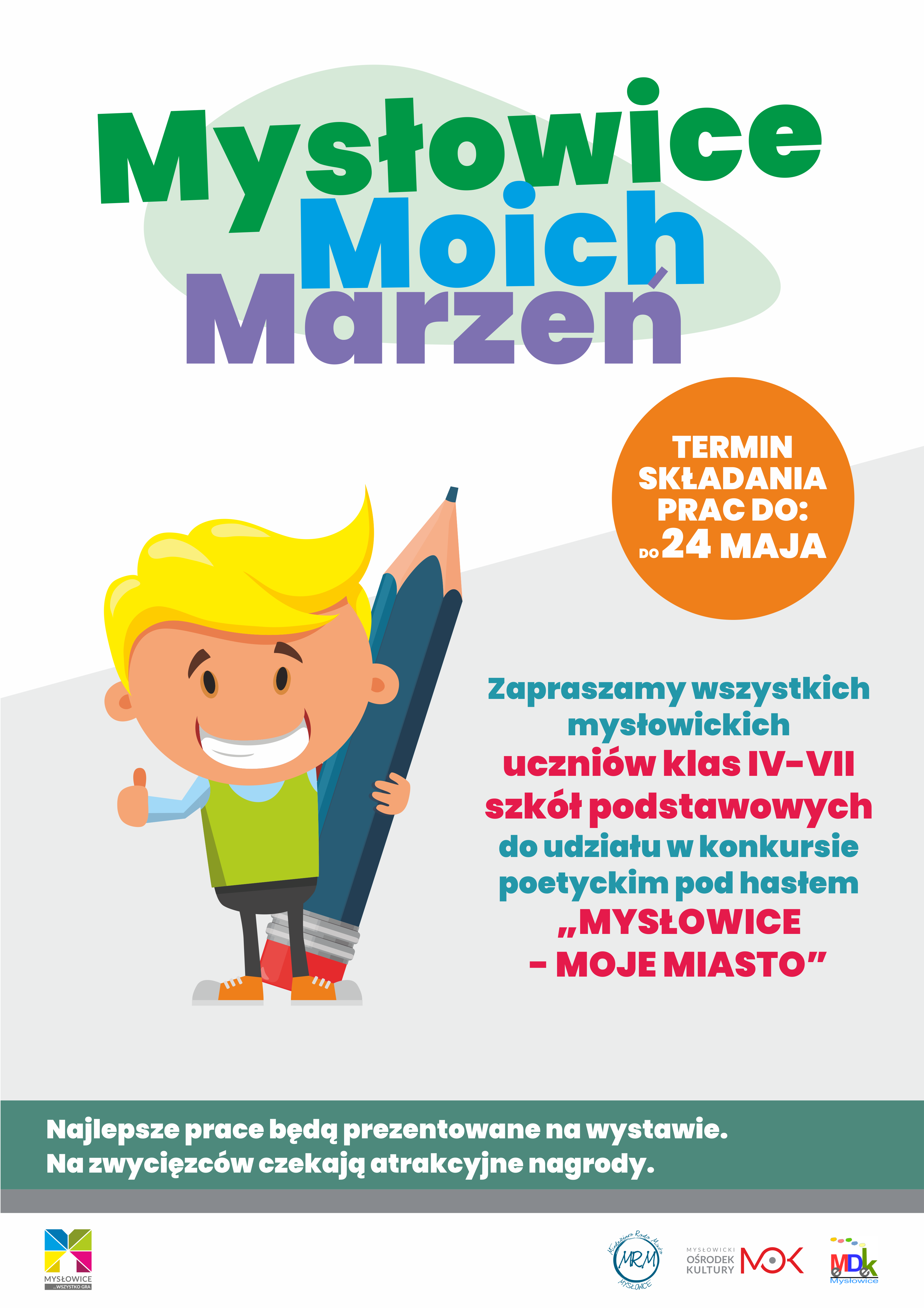 Natomiast konkurs poetycki skierowany jest do uczniów mysłowickich szkół podstawowych klas IV-VII, których zadaniem będzie napisanie wiersza o Mysłowicach. Długość wiersza nie ma znaczenia, a każdy uczestnik może zgłosić tylko 1 wiersz. Prace należy dostarczać do 24 maja.