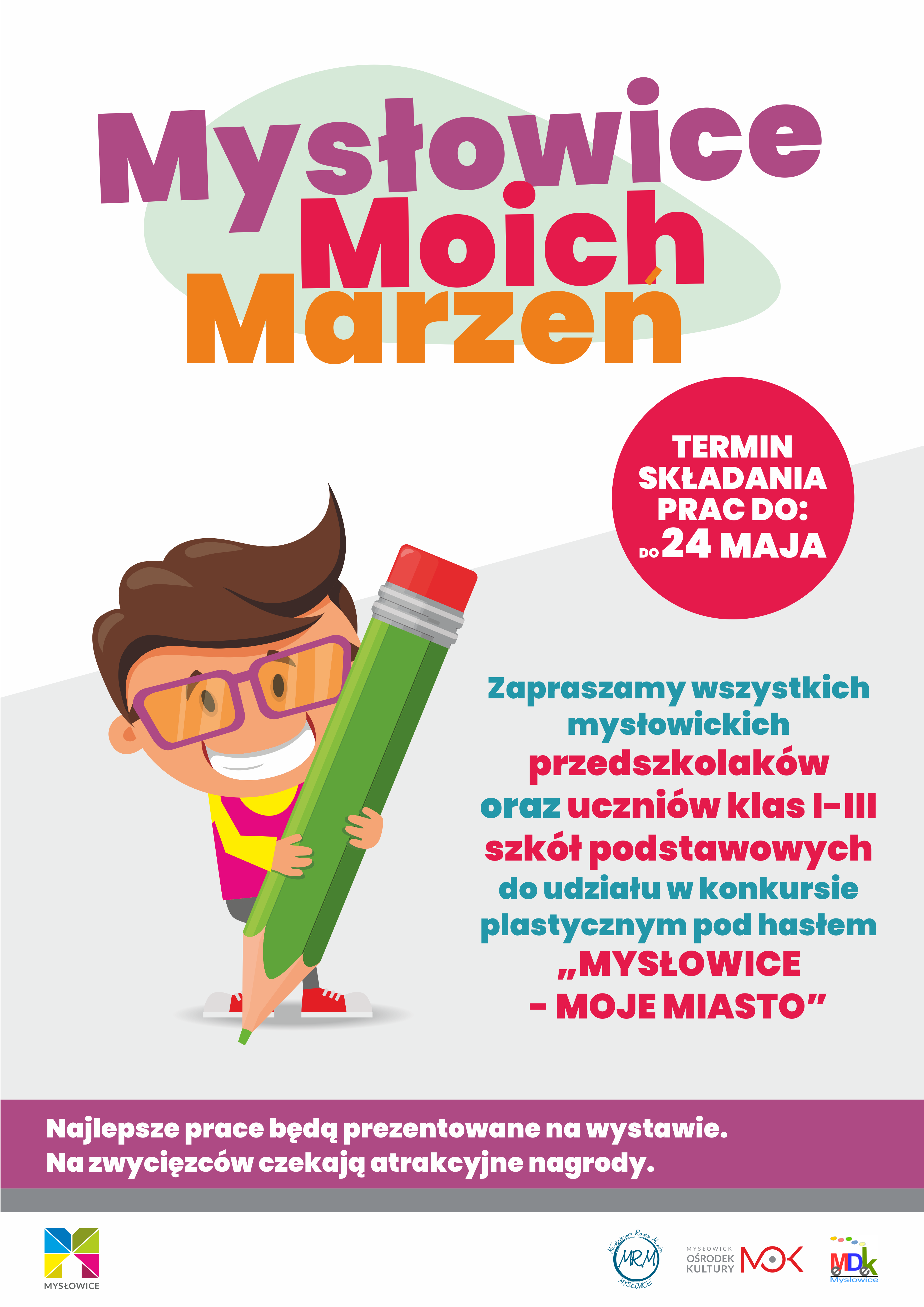 Konkurs plastyczny organizowany jest w dwóch kategoriach i skierowany jest do mysłowickich przedszkolaków (I kategoria) oraz uczniów mysłowickich szkół podstawowych (klasy I-III – II kategoria). Tematyka prac ma być związana z miastem Mysłowice. Hasło przewodnie konkursu plastycznego brzmi „Mysłowice – moje miasto, moje ulubione miejsce”. Technika wykonania prac dowolna, może to być np. rysunek, obraz, wyklejanka, wydzieranka itp.