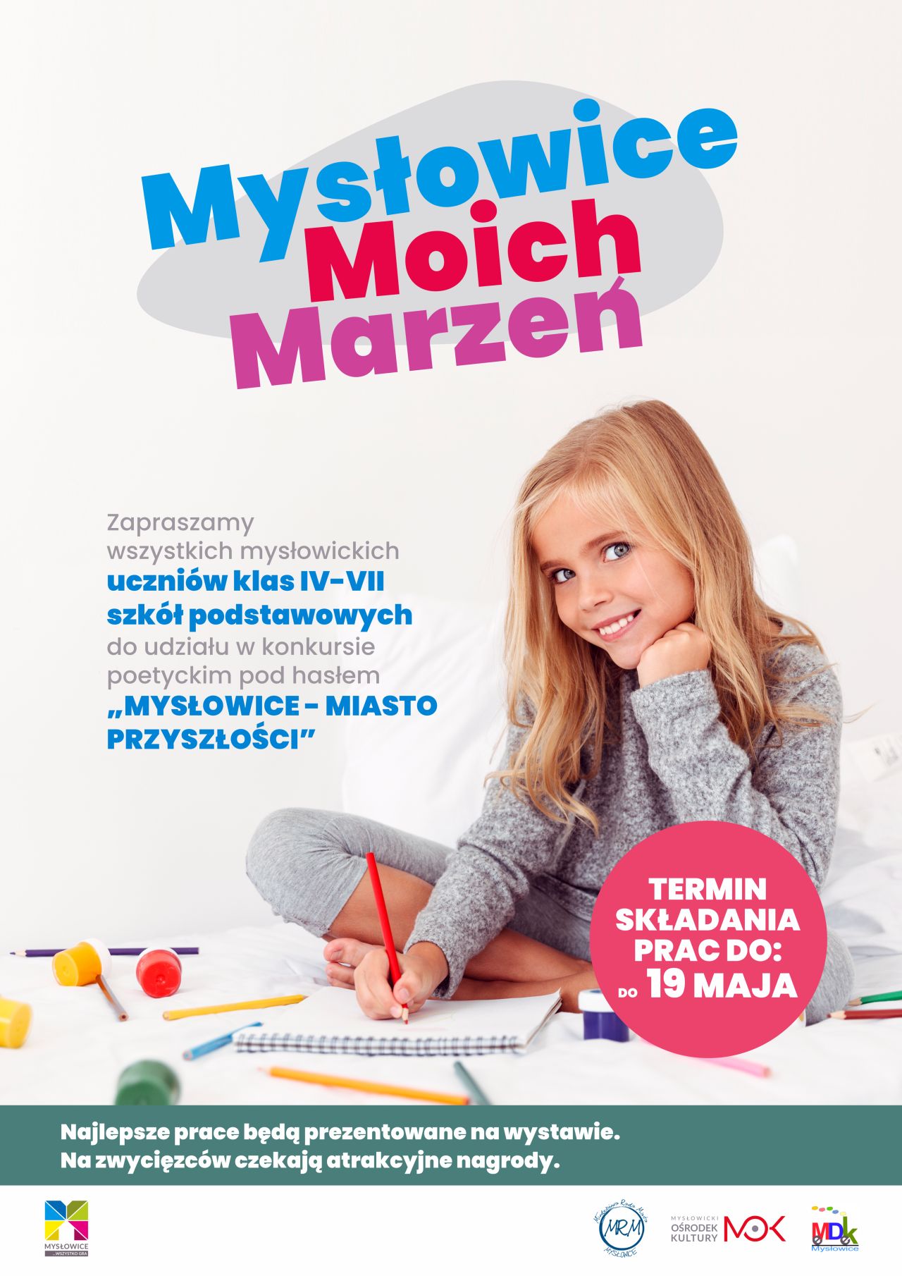 Natomiast konkurs poetycki skierowany jest do uczniów klas IV-VII mysłowickich szkół podstawowych. Udział w konkursie polega na napisaniu wiersza o Mysłowicach. Długość wiersza nie ma znaczenia, a każdy uczestnik może zgłosić tylko 1 wiersz. Prace należy dostarczać do 19 maja do Kancelarii Prezydenta Miasta Mysłowice, ul. Powstańców 1, 41-400 Mysłowice.
