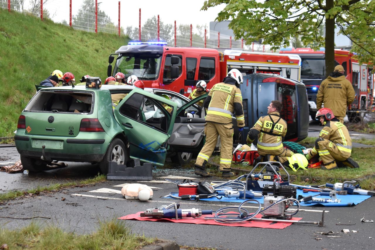 – Więc dostaliśmy zgłoszenie, że na terenie byłego parkingu pod Centrum Handlowym jest silne zadymienie i widać rozbite samochody i jakiś tłum ludzi. Na miejsce zadysponowano zastępy straży pożarnej, które po przybyciu na miejsce zastały 5 samochodów rozbitych. Wokół tych samochodów jest około 20 gapiów, którzy są bardzo agresywni i wewnątrz tych samochodów znajdują się osoby poszkodowane. Na miejsce zostały zadysponowane dodatkowe siły i środki w postaci kolejnych zastępów ochotniczej i zakładowej straży pożarnej, pogotowia, jak również policji i straży miejskiej ze względu na agresywne zachowanie się gapiów. Te wszystkie sytuacje, z którymi tutaj mieliśmy do czynienia, które były prowadzone, mogą się zdarzyć w sytuacji realnej – tłumaczy mł. bryg. Wojciech Chojnowski, oficer prasowy Komendy Miejskiej Państwowej Straży Pożarnej w Mysłowicach.