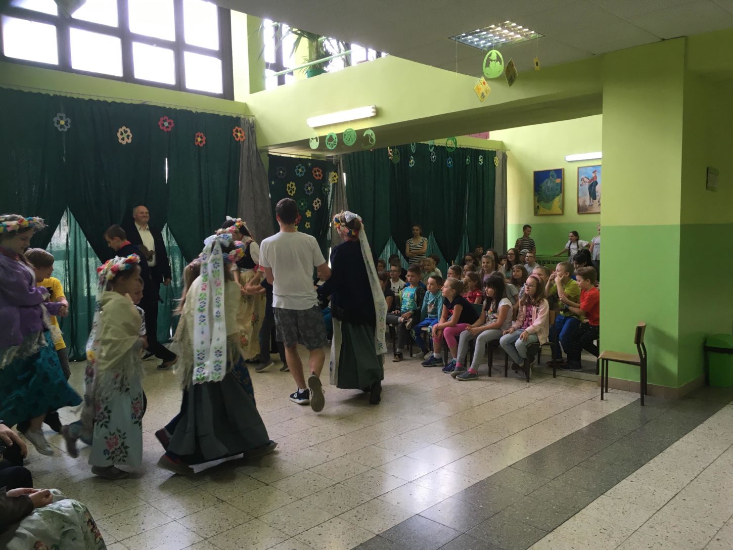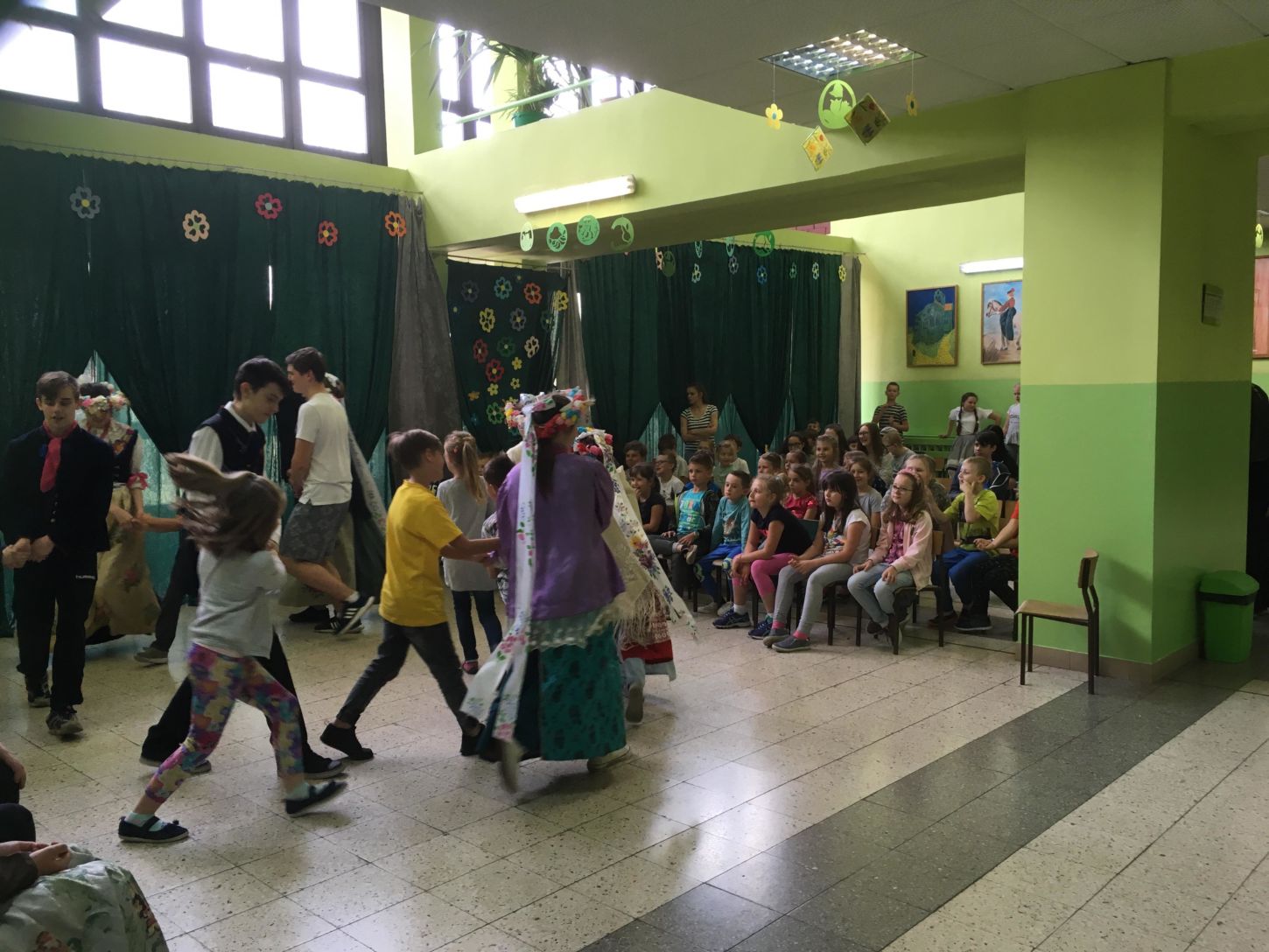 Oprócz tego zaprezentowano bohatera legend mysłowickich- Utopka, przedstawiając dwie mysłowickie legendy o nim. Jedna mówiła o tym, jak żyjąc w Bolinie płatał ludziom różne figle, druga o tym, jak w Kosztowach pilnował z kolegami skarbu Eliasza i Pistulki. Przy okazji uczniowie obejrzeli prace swoich kolegów z klasy 4, którzy w ramach przedmiotu wychowanie regionalne robili komiksy o śląskich legendach. Na sam koniec uczniowie mieli możliwość pooglądać występ szkolnego zespołu „Karolinki”, który w śląskich strojach zatańczył kilka tańców. Ale oprócz tego przeżyli warsztaty, podczas których nauczyli się tańczyć Grożonego.