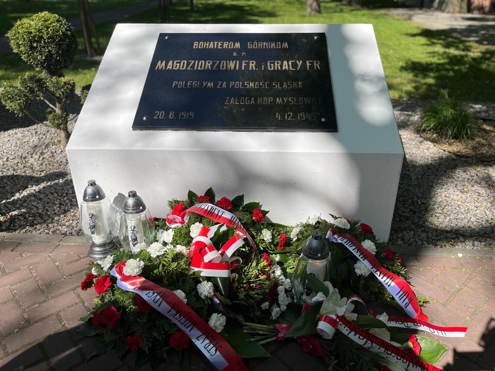 Wspólnie złożono kwiaty pod tablicą upamiętniającą Bohaterów-Górników w Powstańczej Strefie Pamięci, gdzie uczczono pamięć o tych, którzy walczyli o wolność i niepodległość Polski.