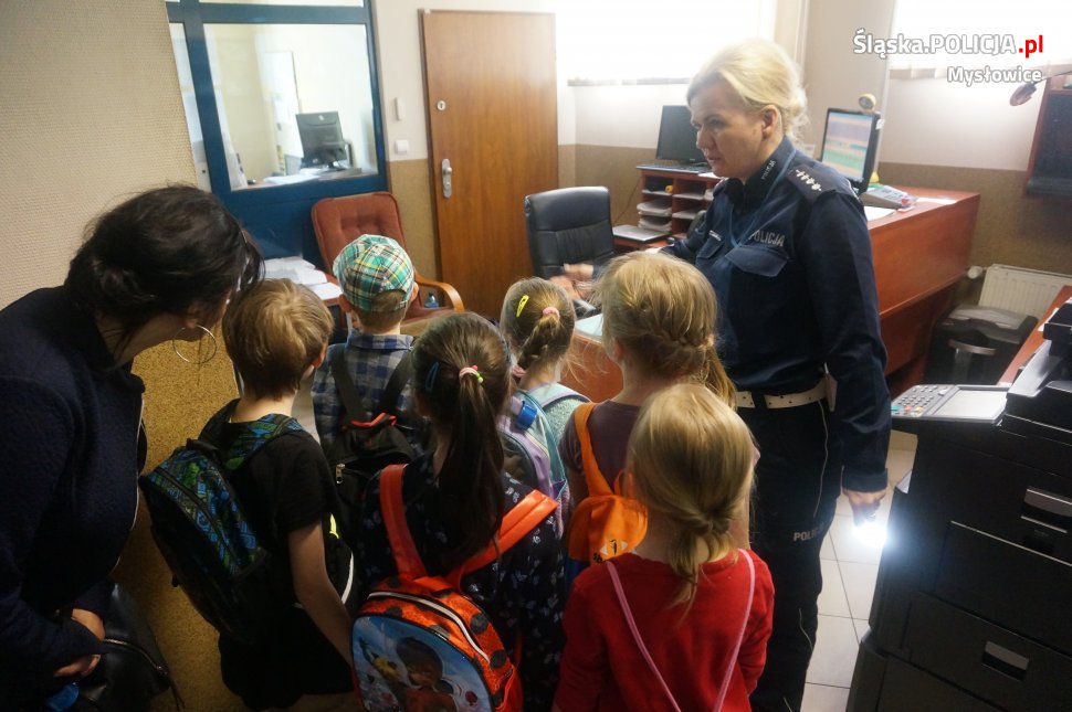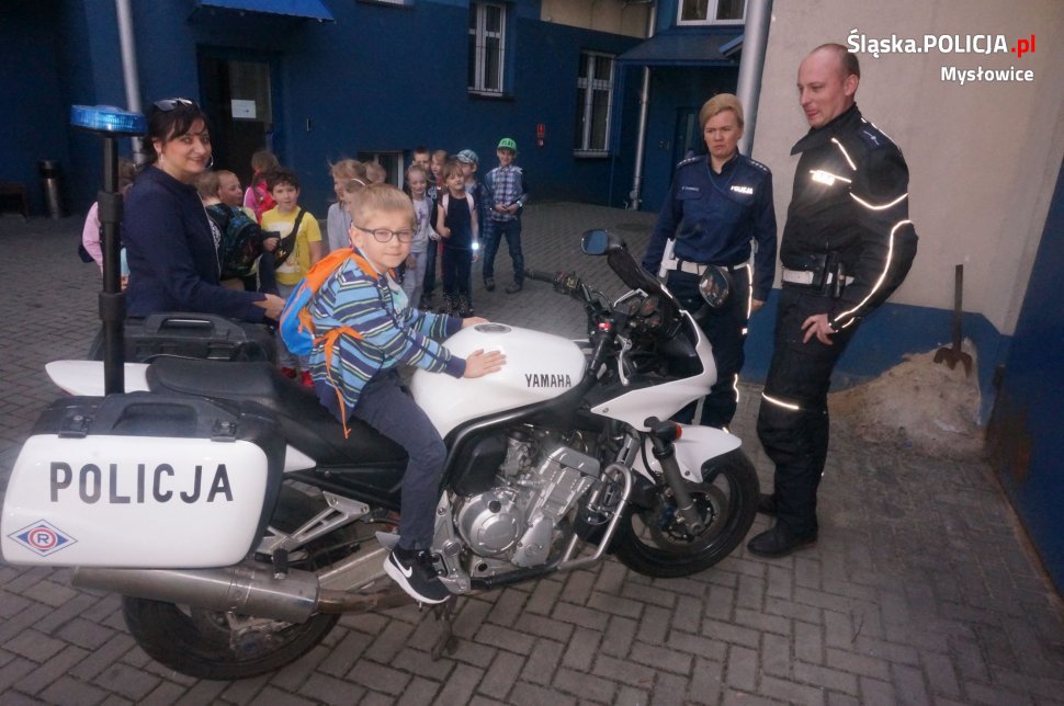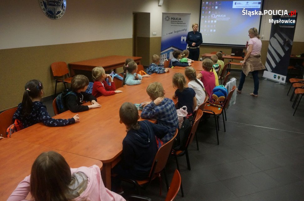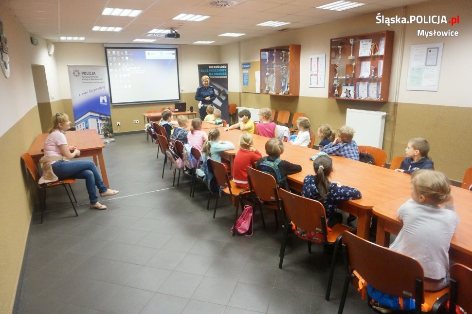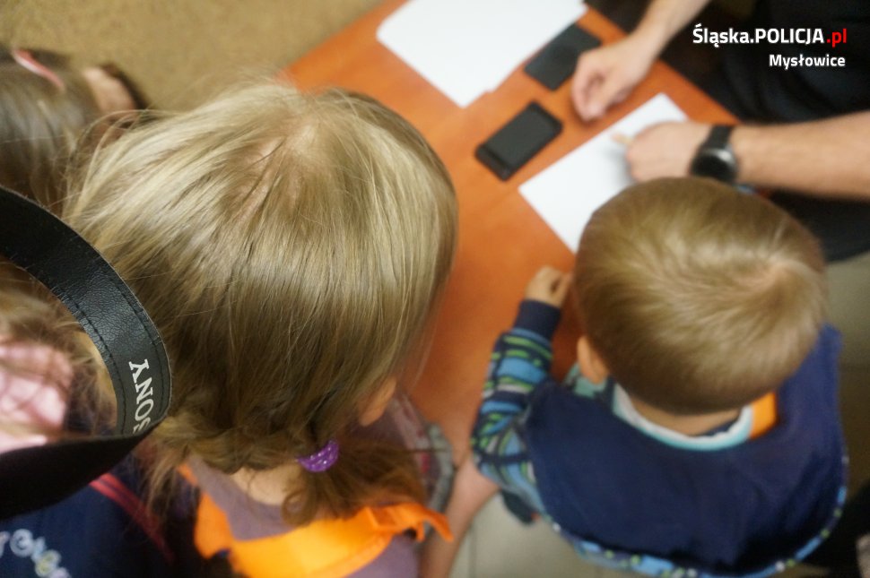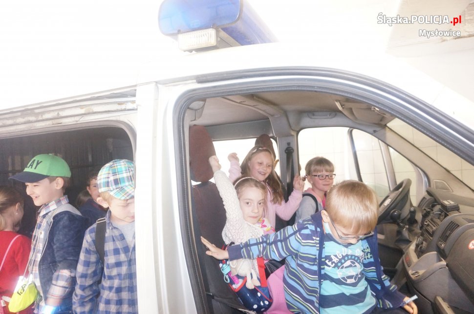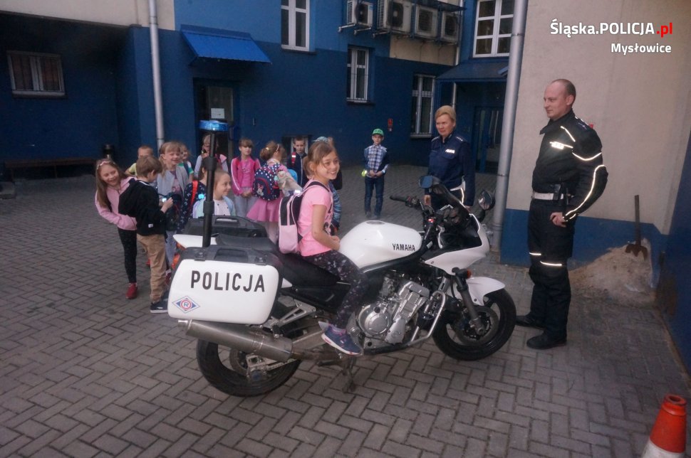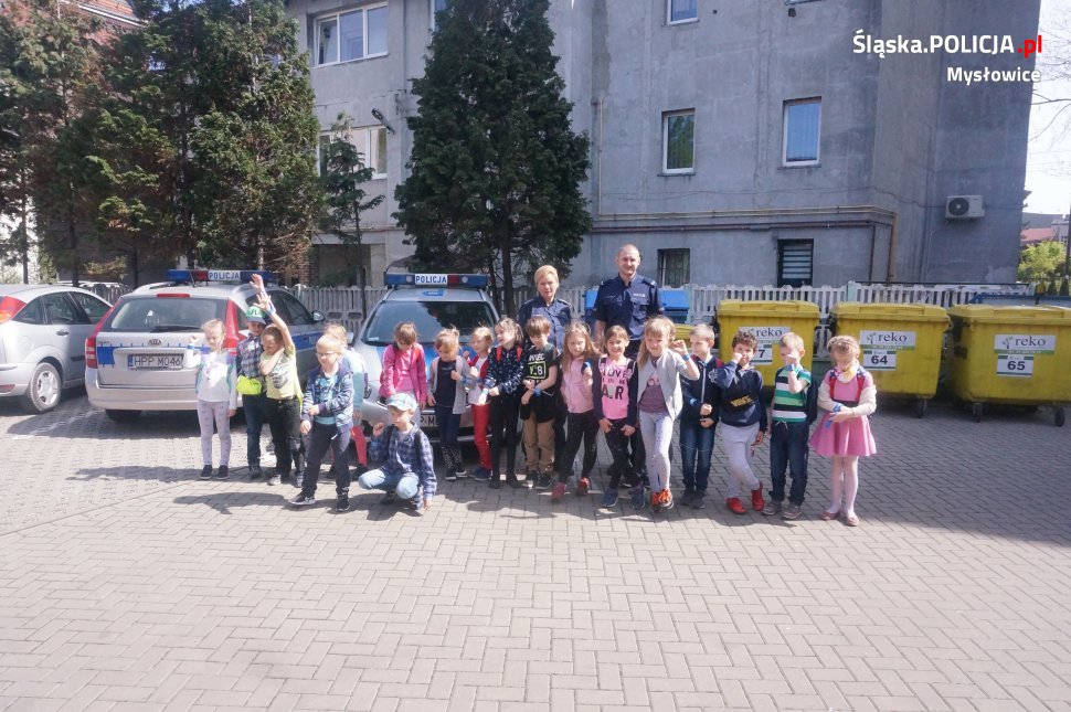 Wizyta pierwszoklasistów ze Szkoły Podstawowej nr 13 w Mysłowicach miała nauczyć ich właściwego postępowania i zachowania na drodze. Mundurowi informowali, jak unikać zagrożeń i bezpiecznie poruszać się po przejściu dla pieszych. Z dziećmi rozmawiano także na temat ich bezpieczeństwa podczas jazdy na rowerze i przejazdu samochodem.