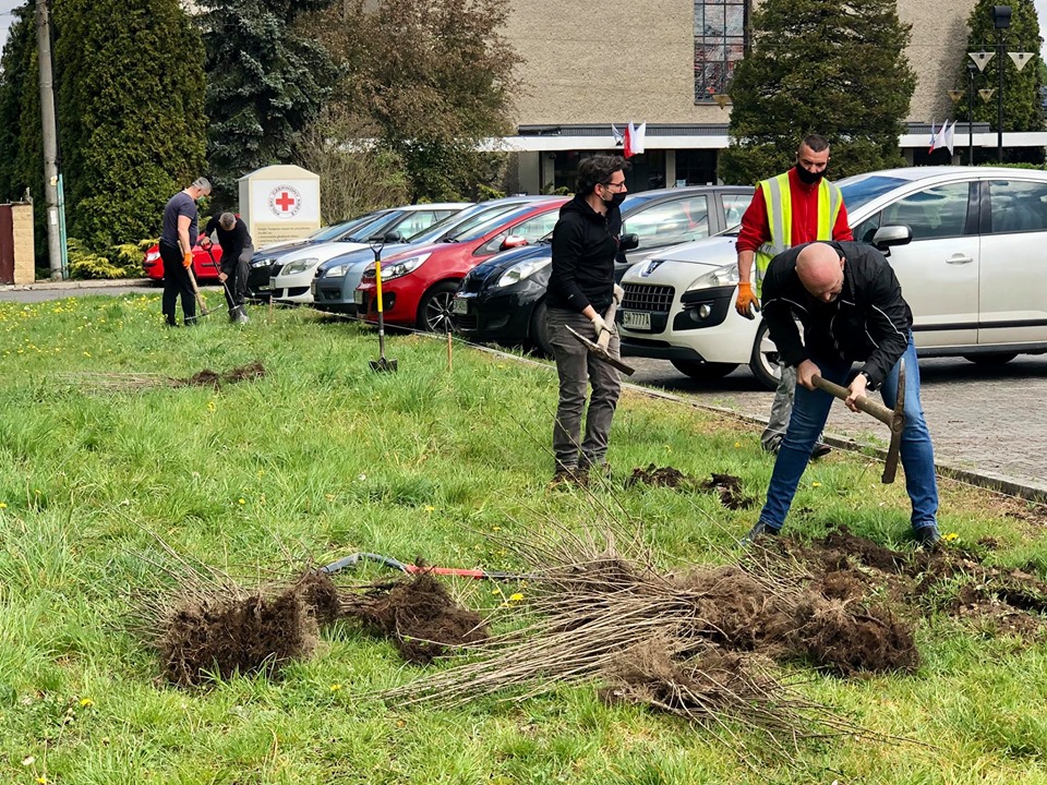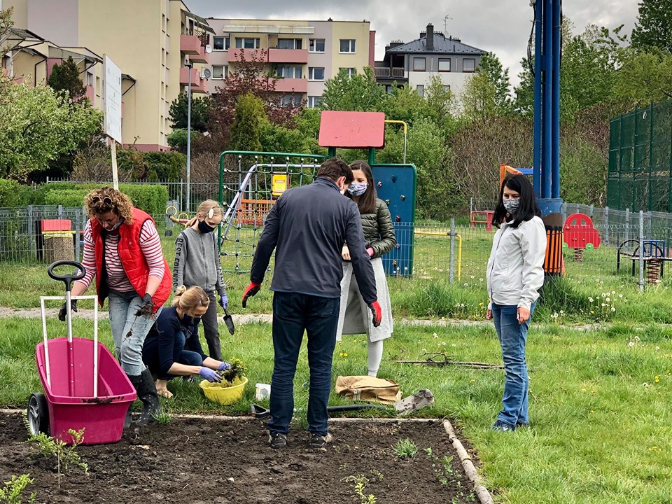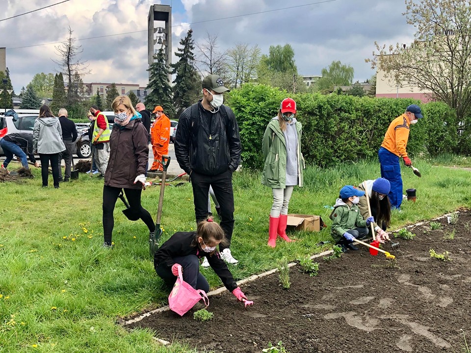 W sobotni poranek w okolicach placu zabaw przy ulicy Jodłowej rozpoczęło się sadzenie krzewów, kwiatów, drzewek i żywopłotów.