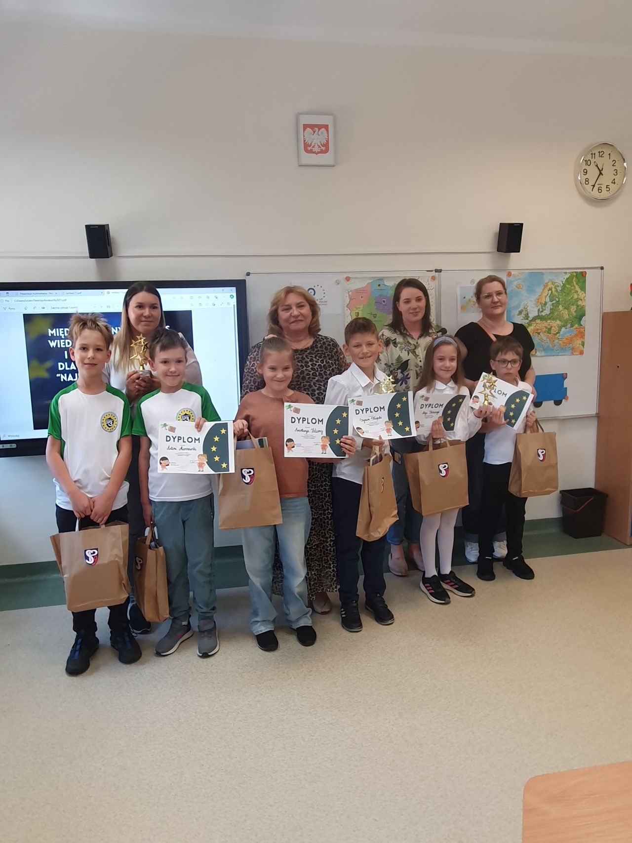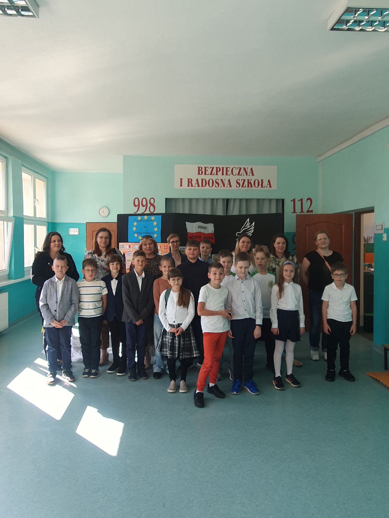 Druga część konkursu polegała na rozpoznaniu zabytku, wpisaniu w jakim mieście i państwie Unii Europejskiej się znajduje oraz z jakiego kraju jest zaprezentowana flaga. Przed wręczeniem nagród uczniowie wspólnie odśpiewali „Odę do radości”, następnie Wioleta Stuchlik, dyrektorka Szkoły Podstawowej nr 9 rozdała nagrody i dyplomy. I miejsce zajął zespół z SP 10. II miejsce przypadło uczniom z SP 3, a III miejsce – przedstawicielom z ZSP 1.