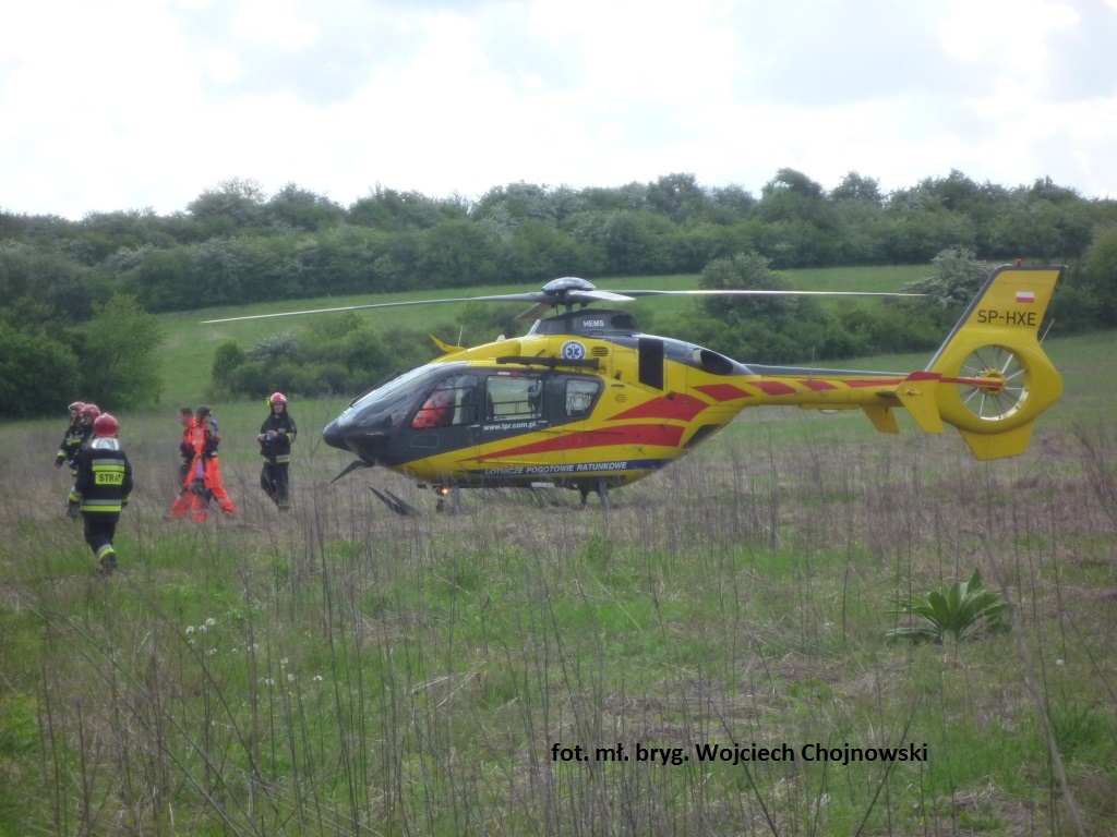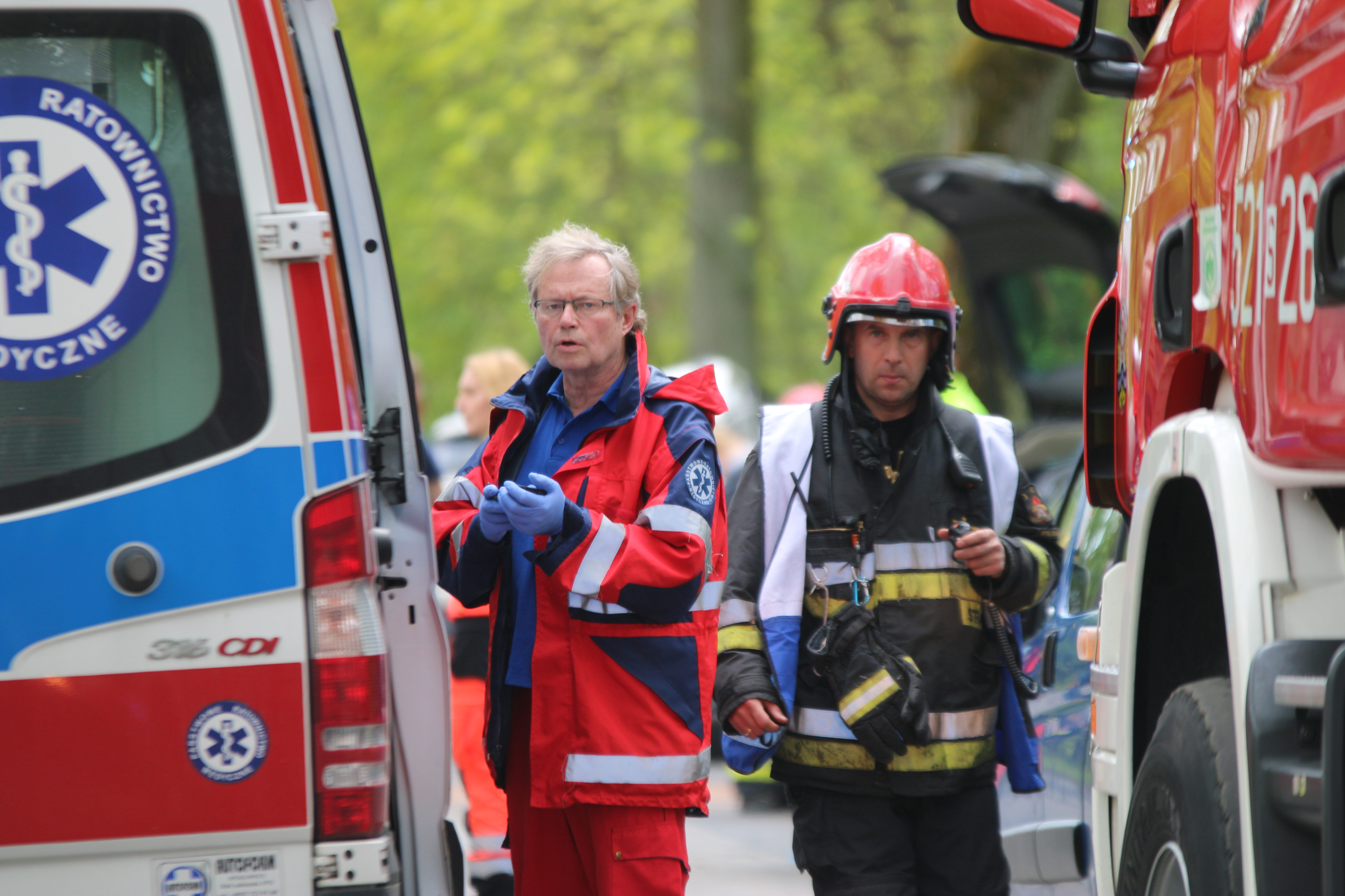 Na miejsce wypadku zostały wezwane służby ratunkowe: straż pożarna, policja i pogotowie, także lotnicze.