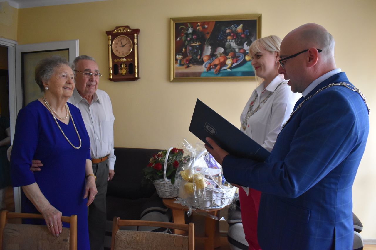 Z okazji żelaznych godów państwa Skrzypców odwiedzili prezydent Dariusz Wójtowicz oraz Paulina Kalisz, kierowniczka Urzędu Stanu Cywilnego w Mysłowicach. Od miejskiej delegacji pani Cecylia i pan Józef przyjęli życzenia i kwiaty.