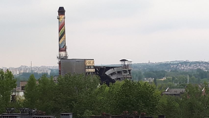 Do poważnej katastrofy budowlanej doszło dzisiaj na terenie po kopalni Mysłowice. Około 15.40 straż pożarna otrzymała zgłoszenie o zawaleniu części budynku byłej sortowni węgla. Kilka ostatnich kondygnacji budynku uległo zawaleniu przebijając strop, spadając na sam dół. W tej chwili nawet strażakom nie wolno wchodzić do środka.