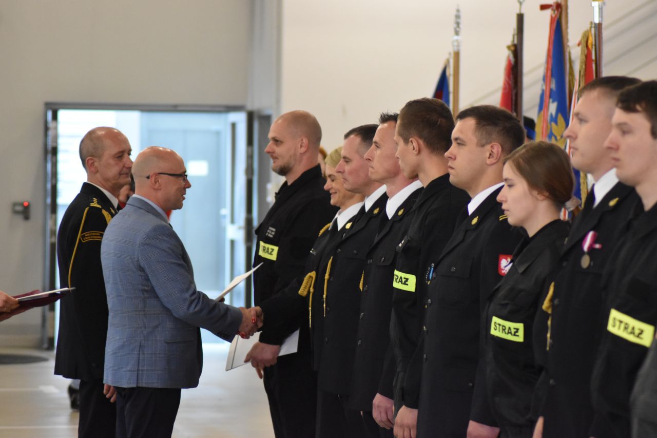 Podczas apelu strażacy odebrali awansy na wyższe stopnie służbowe oraz medale: za długoletnią służbę, przyznane przez Prezydenta RP, i za zasługi dla pożarnictwa, przyznane przez ministra spraw wewnętrznych i administracji. Ponadto prezydent Mysłowic wyróżnił 19 funkcjonariuszy PSP i OSP nagrodami pieniężnymi za zaangażowanie w zapewnianie bezpieczeństwa mieszkańcom naszego miasta.