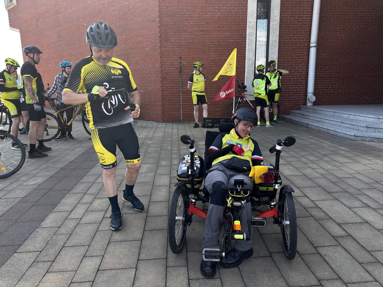 – Ich nie trzeba namawiać. Oni są zawsze gotowi, tylko rzucę hasło i już przyjeżdżają – mówi Łukasz Wiliński, który porusza się na trójkołowym rowerze.