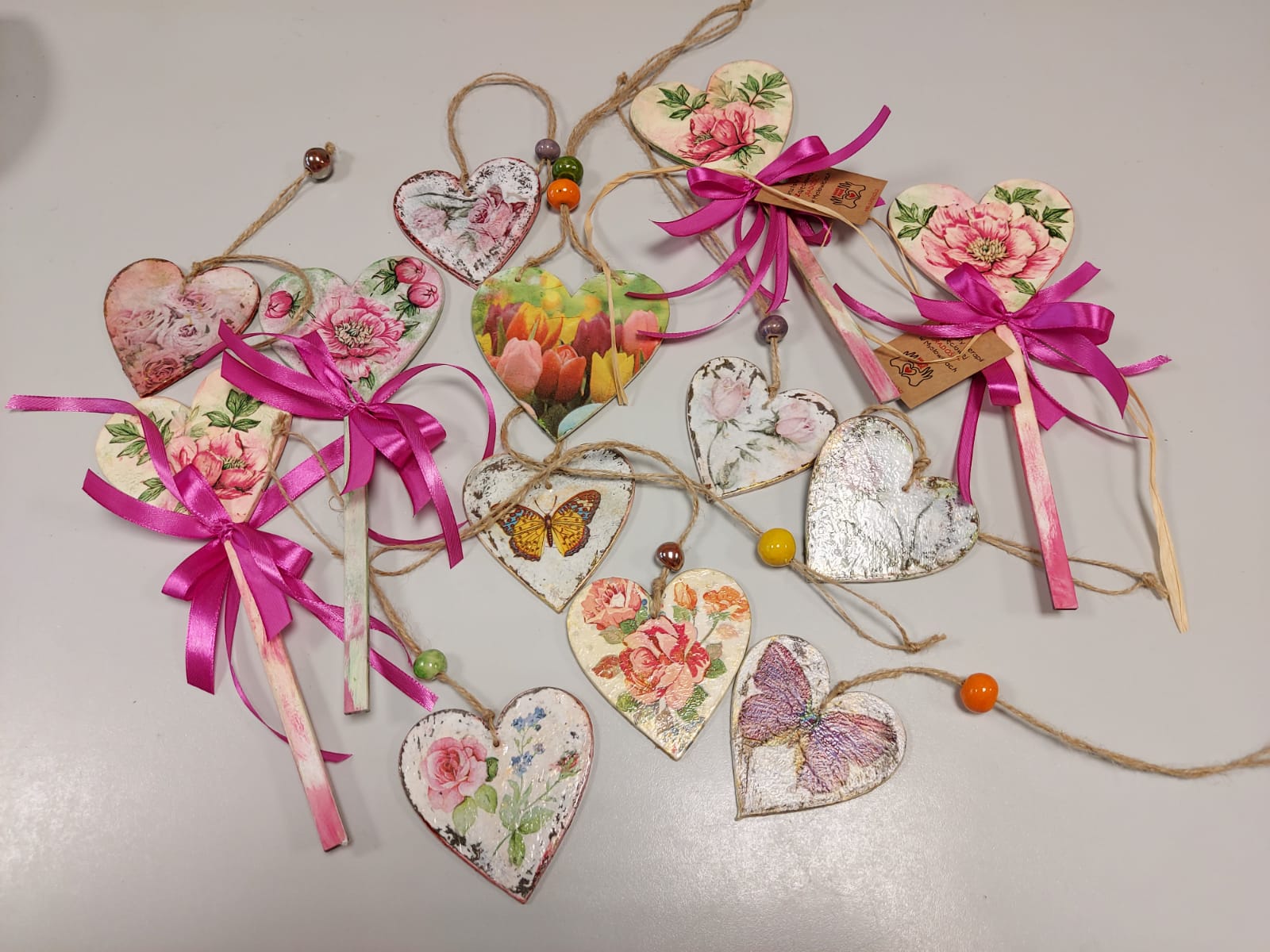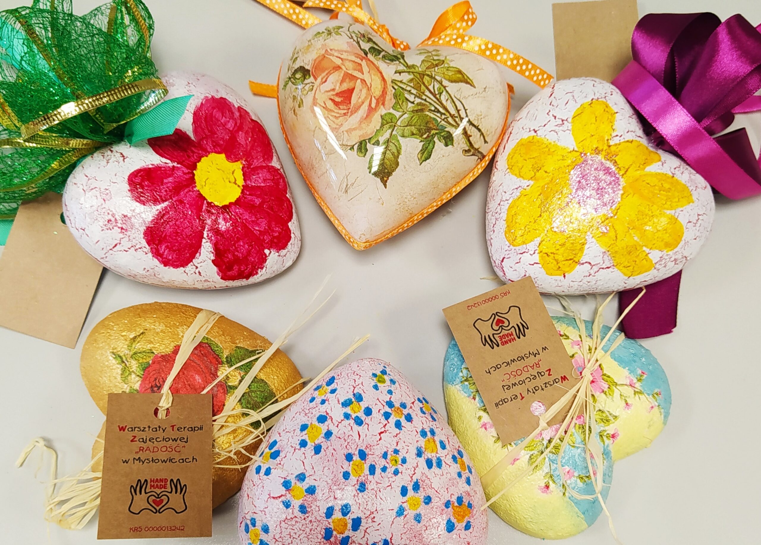 – Serduszka były wykonywane własnoręcznie różnymi technikami plastycznymi, m.in. decoupagem, akrylem, z drewna czy wyszywane. Namalowano także obraz. Wszystkie prace powstały podczas zajęć zdalnych, a następnie zostały wykończone przez instruktorów – mówi Marzena Kordys, kierownik Warsztatów Terapii Zajęciowej przy Stowarzyszeniu Pomocy Dzieciom Niepełnosprawnym „Radość” w Mysłowicach.