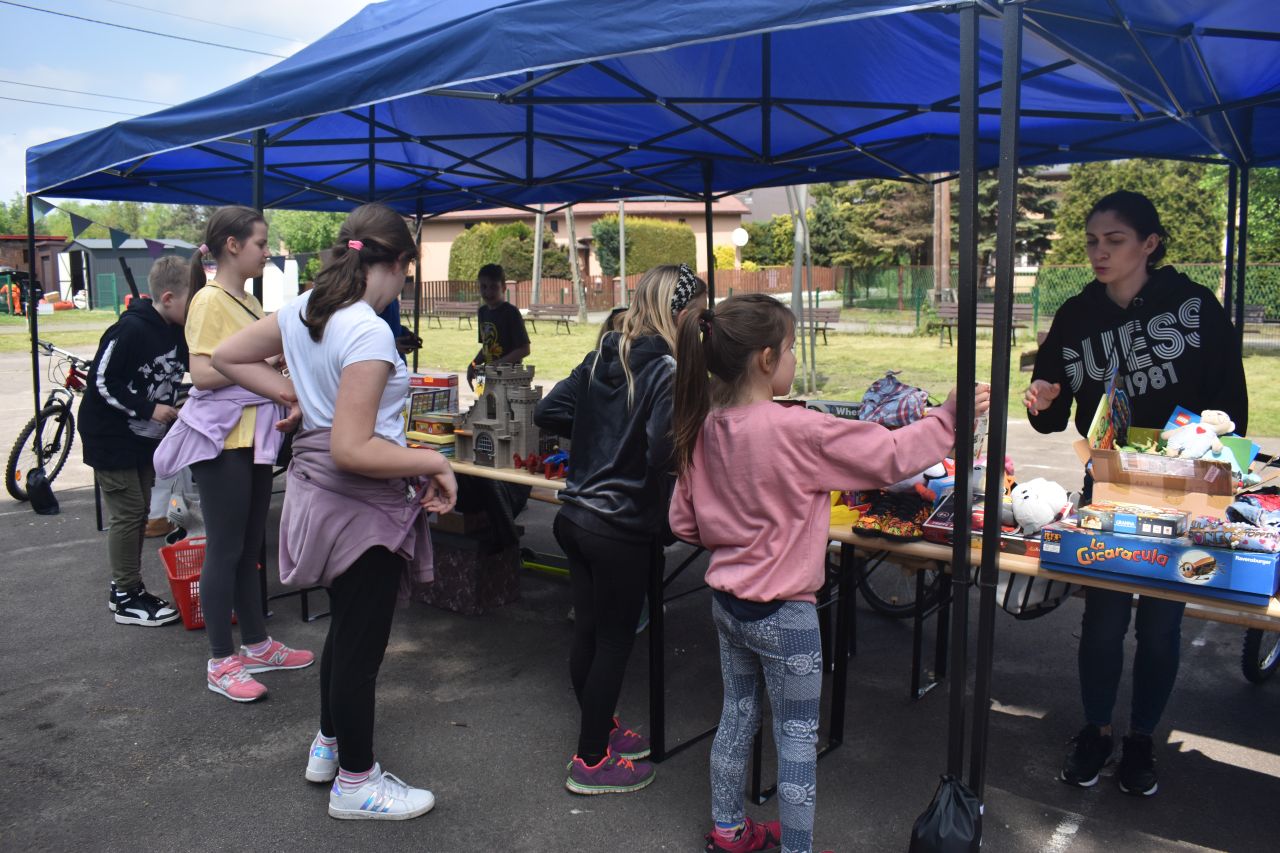 Tego dnia dziećkowiczanie mieli też okazję bliżej zapoznać się z defibrylatorem AED – urządzeniem ratującym życie, które również zostało zakupione ze środków MBO i jest dostępne dla każdego na ścianie budynku ochotniczej straży pożarnej. Jego obsługi uczyli pracownicy Centrum Powiadamiania Ratunkowego w Katowicach oraz Jarogniew Krupiński z Hellmedic, który przyjechał w towarzystwie psiego ratownika Hellboya. Wielkim powodzeniem cieszyła się także pierwsza na Dziećkowicach wyprzedaż garażowa, której organizacja marzyła się radzie dzielnicy już od kilku lat.
