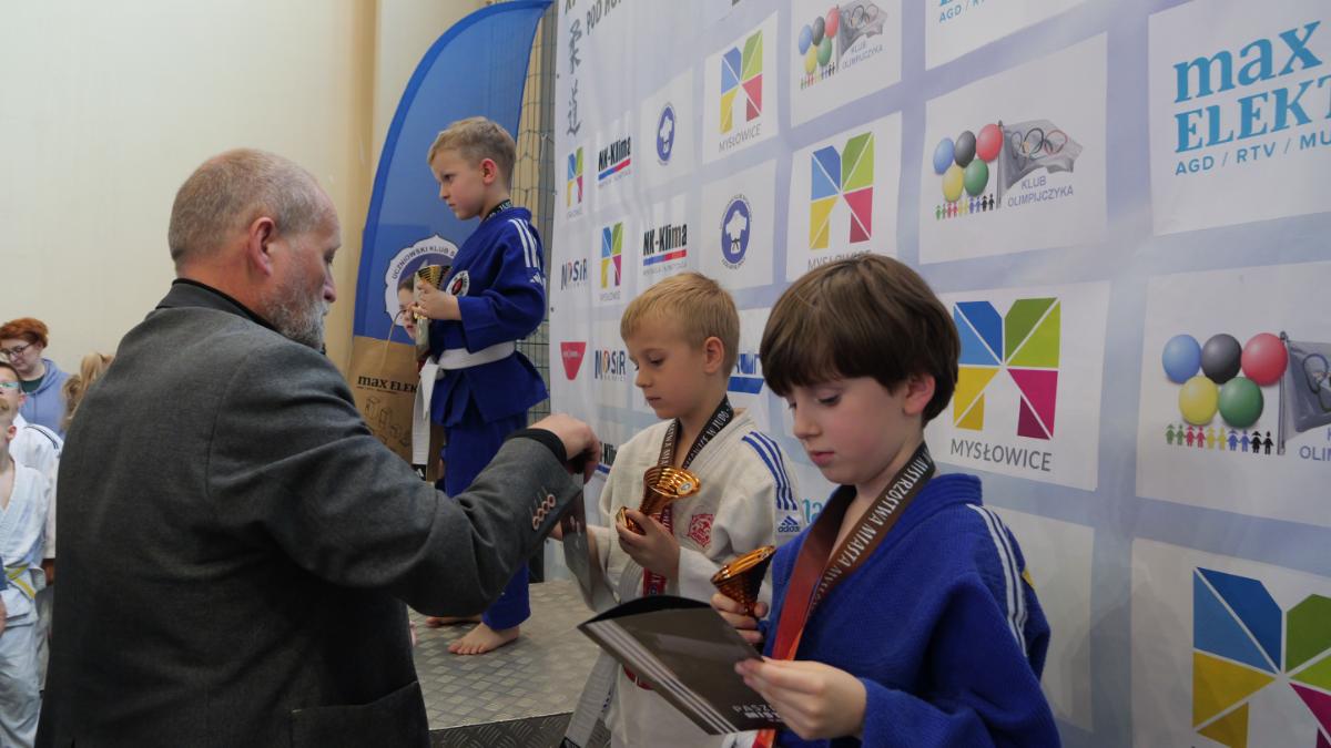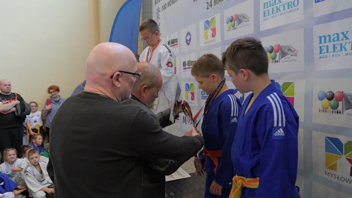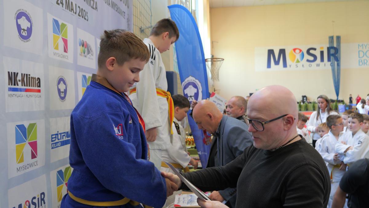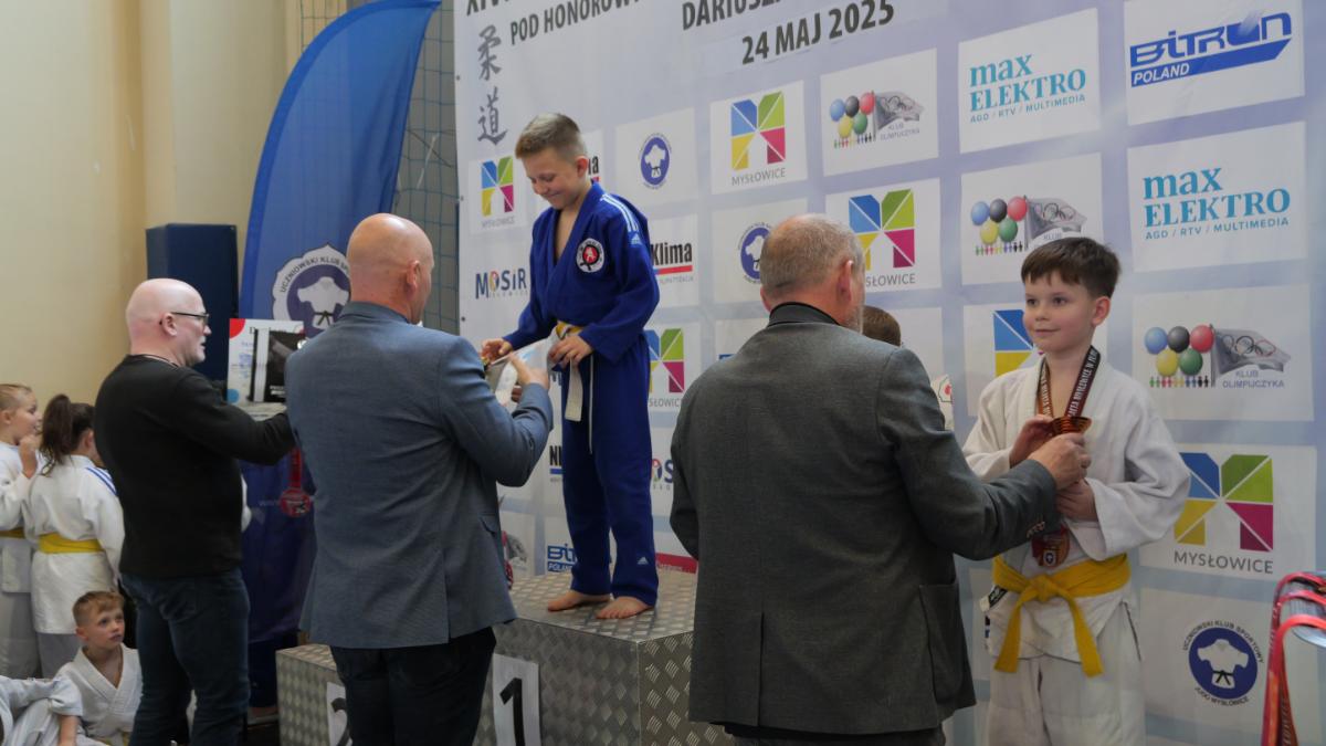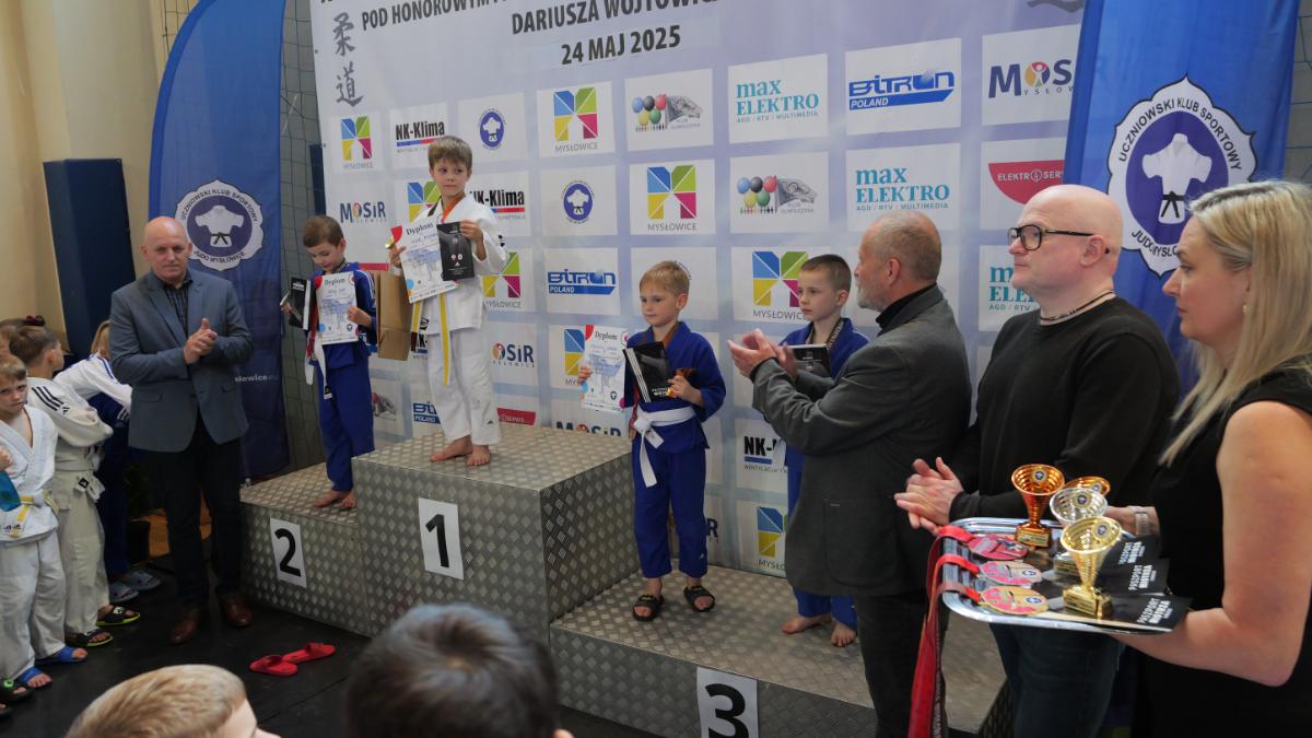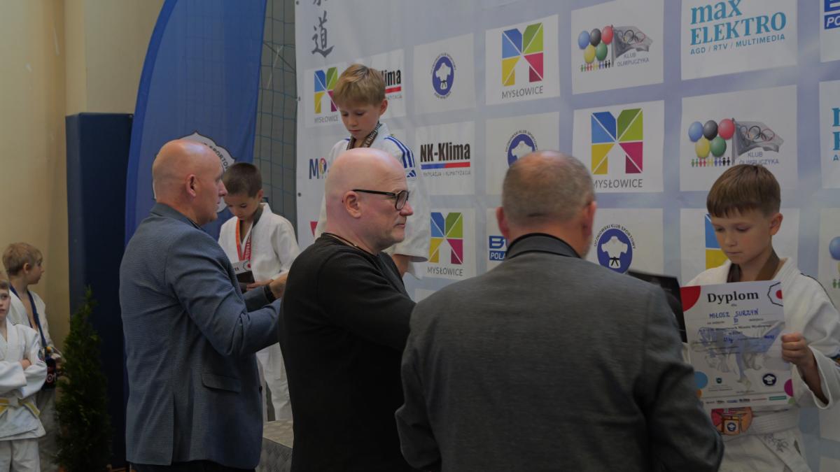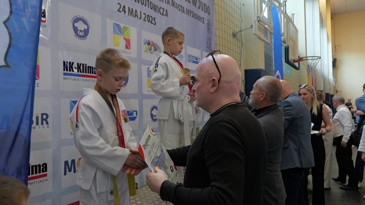 Zanim padły pierwsze komendy „hajime”, cała hala zaśpiewała „Sto lat” dla trenera Ryszarda Dziewulskiego – głównego organizatora zawodów, który niedawno obchodził urodziny. Był tort, prezenty i owacje na stojąco – wyraz wdzięczności za lata pracy na rzecz judo w Mysłowicach.
