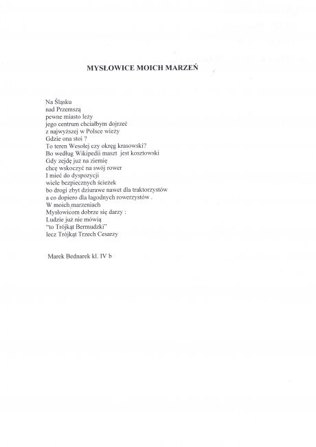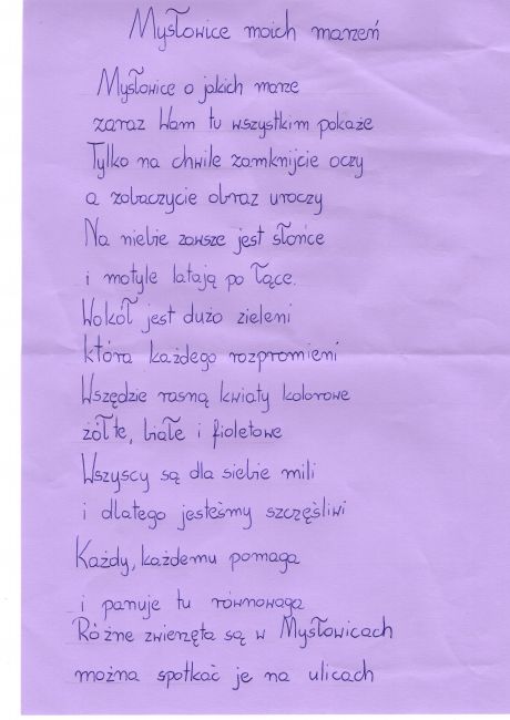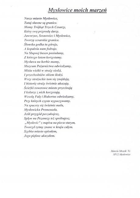 „Mysłowice moich marzeń” to konkurs plastyczno-poetycki organizowany w naszym mieście od lat z okazji Dnia Dziecka. Właśnie poznaliśmy wyniki tegorocznej edycji. Jury, w skład którego weszli przedstawiciele Młodzieżowego Domu Kultury, Urzędu Miasta Mysłowice, Mysłowickiego Ośrodka Kultury oraz Młodzieżowej Rady Miasta Mysłowice, wyłoniło zwycięzców i wyróżnionych w trzech kategoriach.