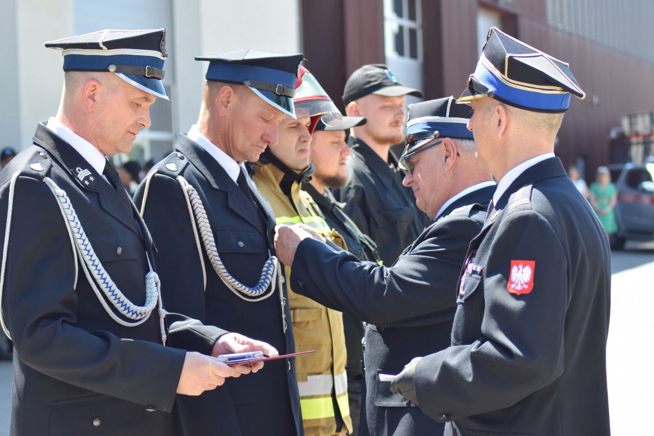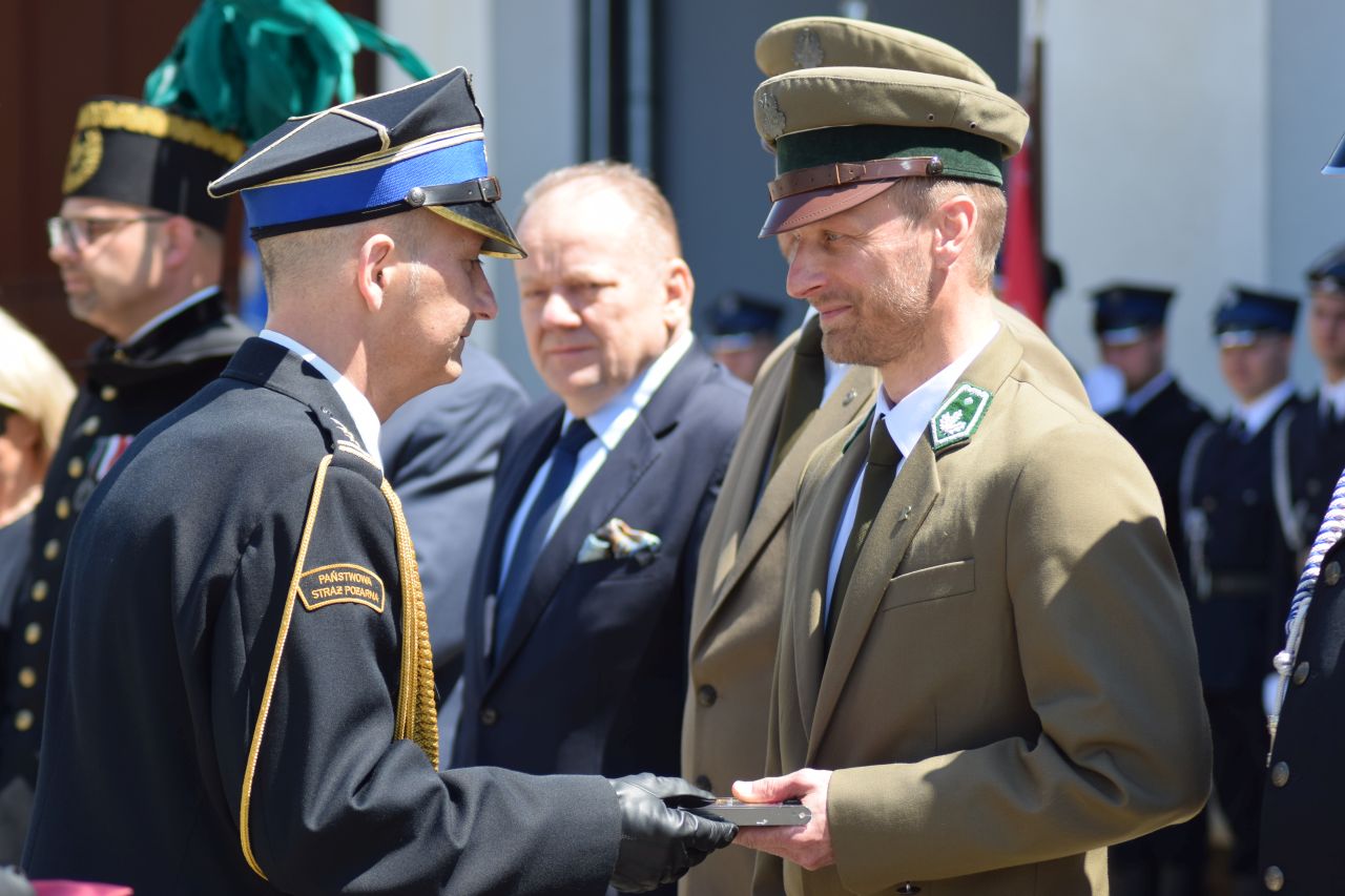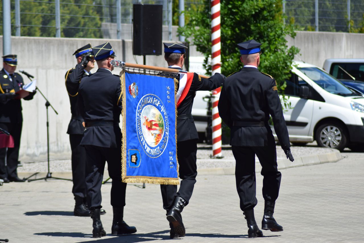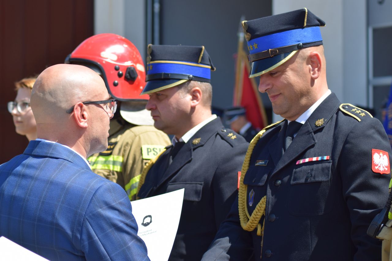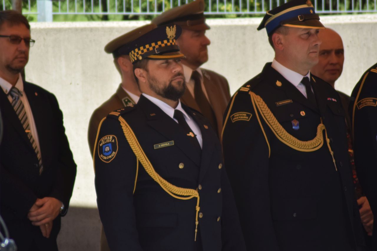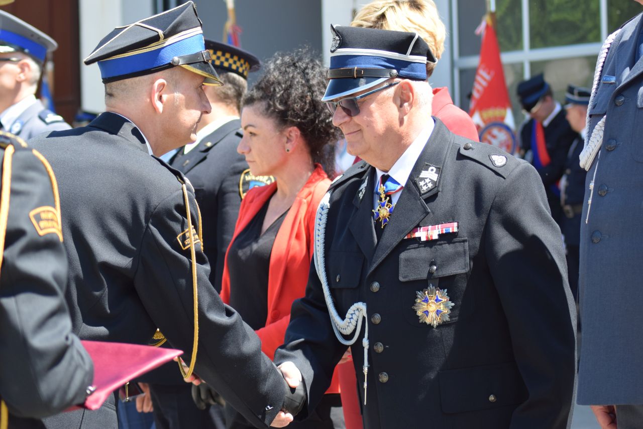 Uroczystość przed Komendą Miejską Państwowej Straży Pożarnej w Mysłowicach była okazją do wręczenia awansów na wyższe stopnie służbowe, odznaczeń i okolicznościowych medali z okazji 30-lecia PSP oraz prezydenckich nagród.